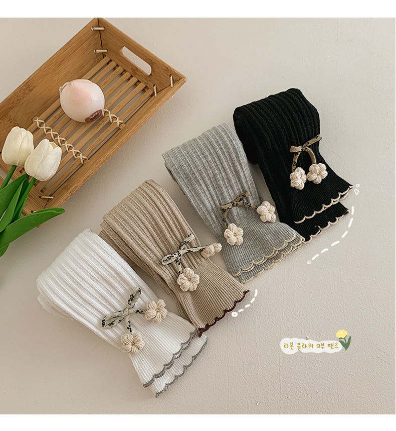 여아 바지 봄과 가을 얇은 아기의 9 점 레이스 작은 꽃 나비 어린이 레깅스 겉옷 양말