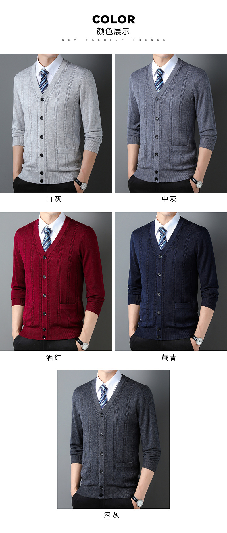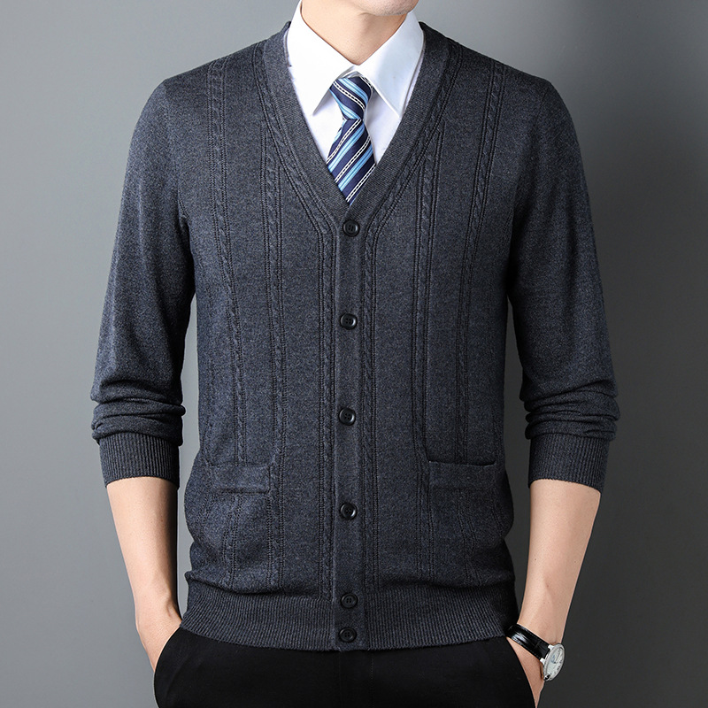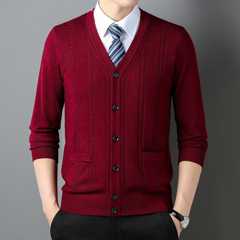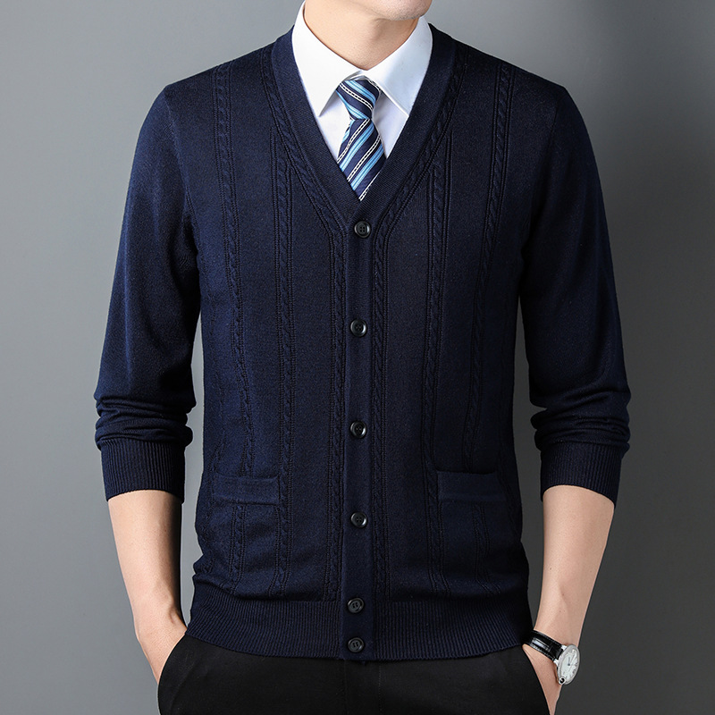 가을과 겨울 남성 니트 카디건 중년 새로운 긴팔 비즈니스 자카드 가을 의류 스트라이프 포켓 남성 코트 도매