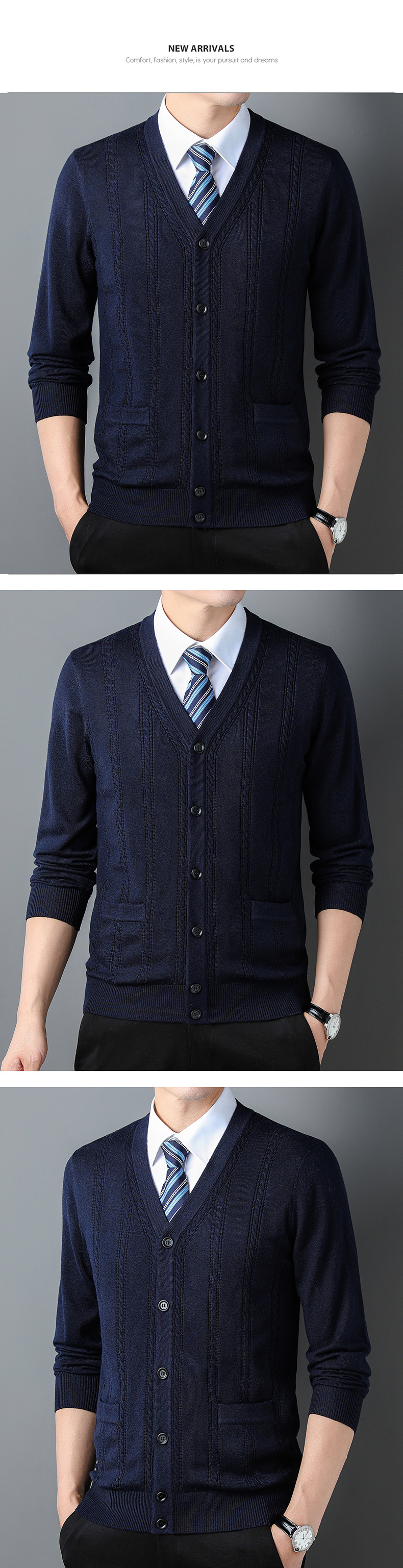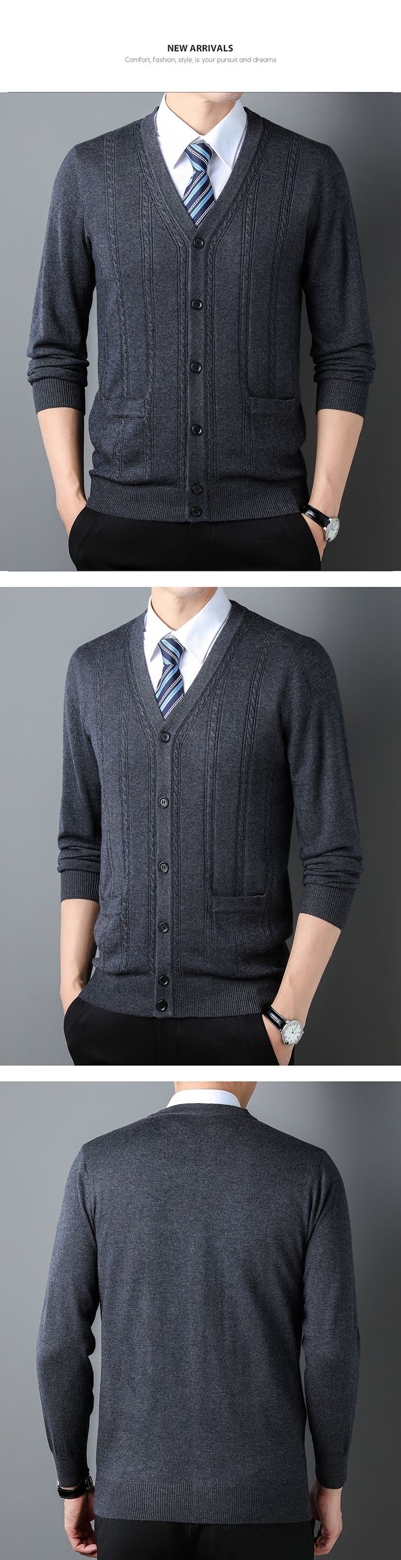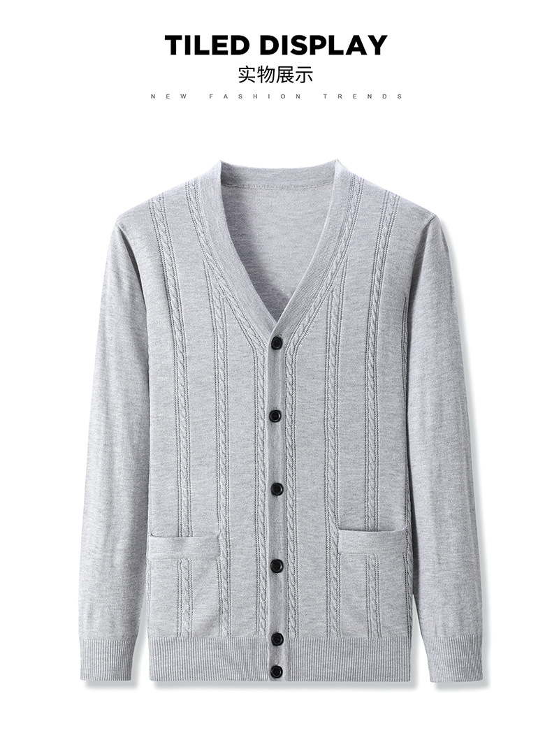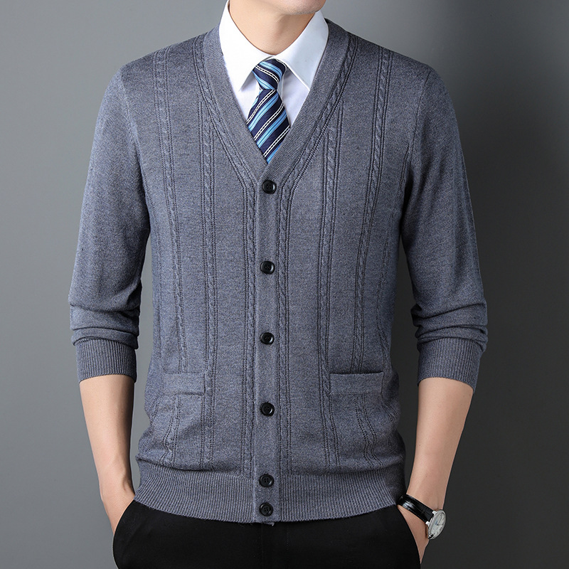 가을과 겨울 남성 니트 카디건 중년 새로운 긴팔 비즈니스 자카드 가을 의류 스트라이프 포켓 남성 코트 도매스토어 가기