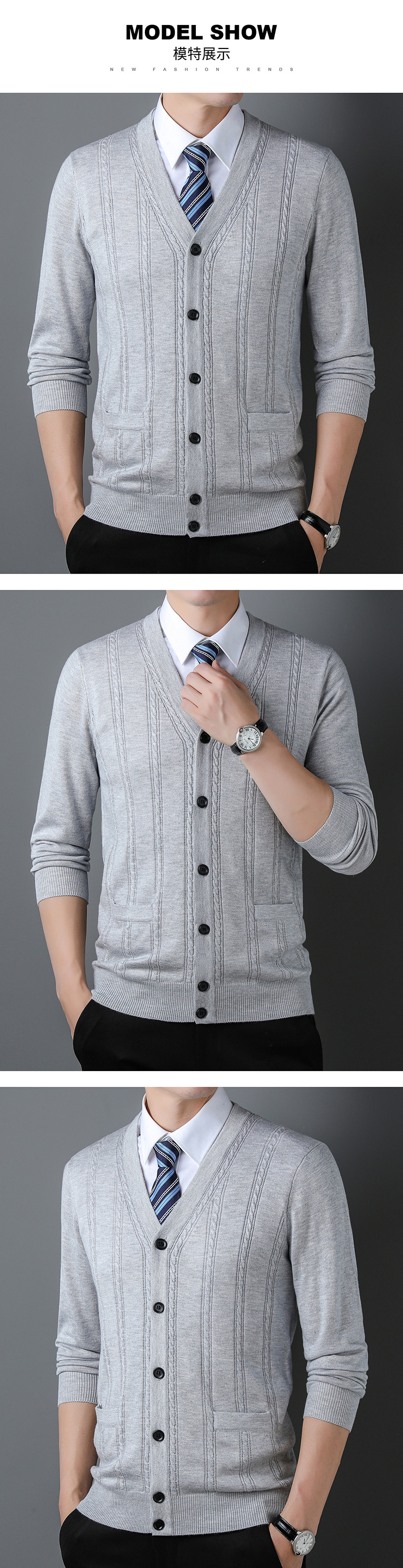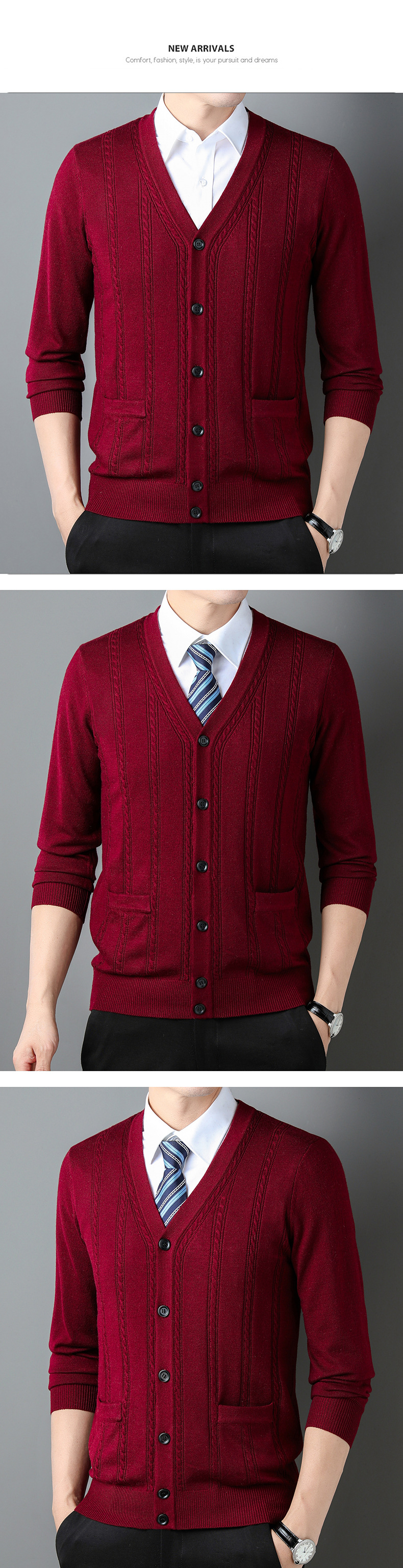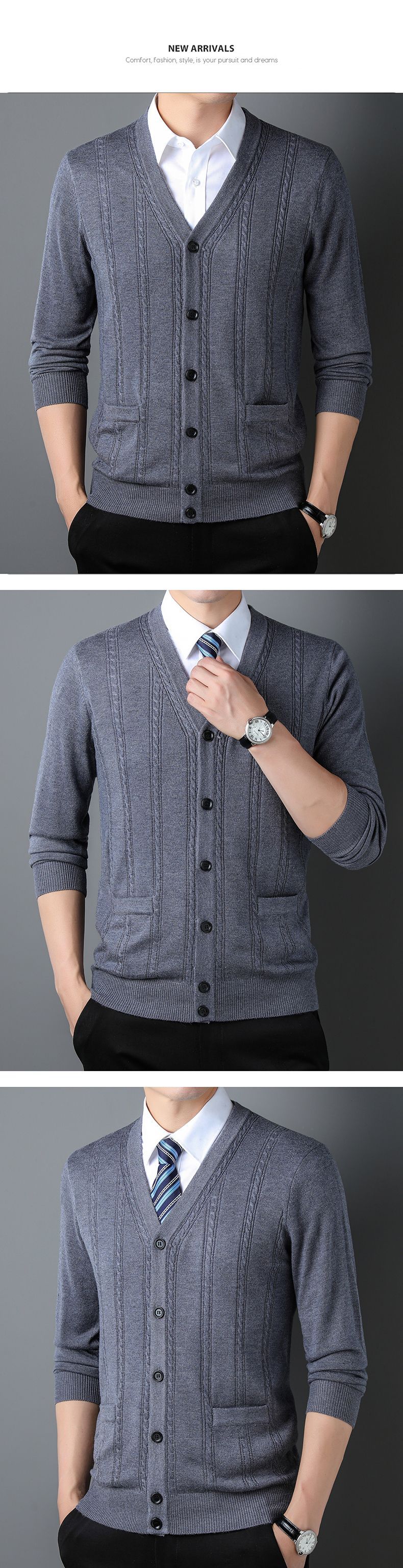 가을과 겨울 남성 니트 카디건 중년 새로운 긴팔 비즈니스 자카드 가을 의류 스트라이프 포켓 남성 코트 도매스토어 가기