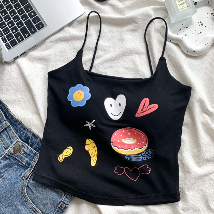 새로운 스타일 순수한 섹시한 인쇄 슬링 가슴 패드 포장 가슴 달콤한 향신료 소녀 겉옷 기본 짧은 탑 아름다운 등 조끼