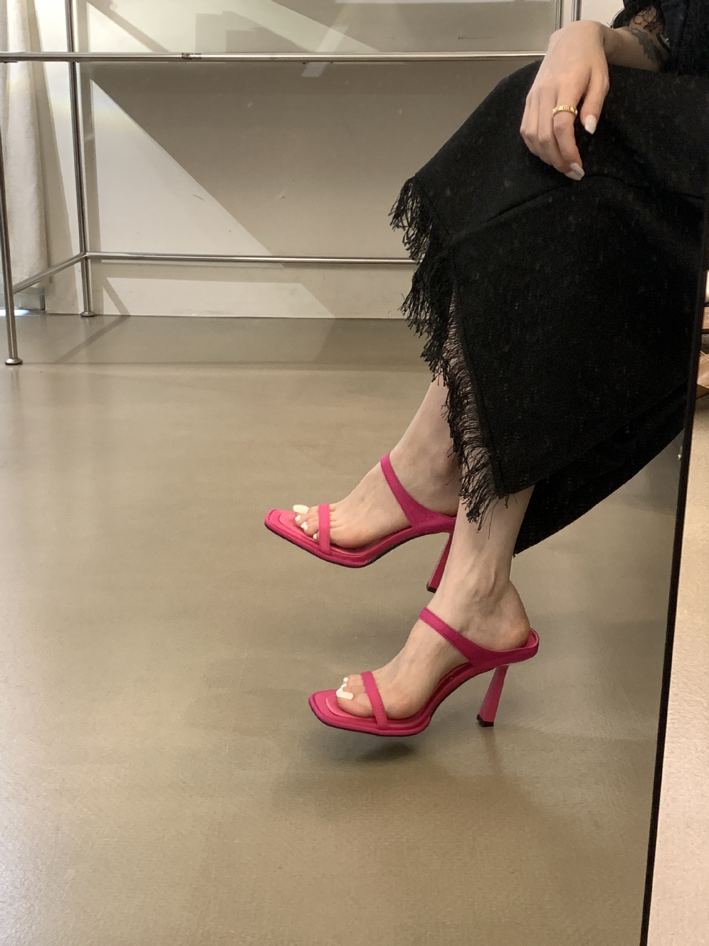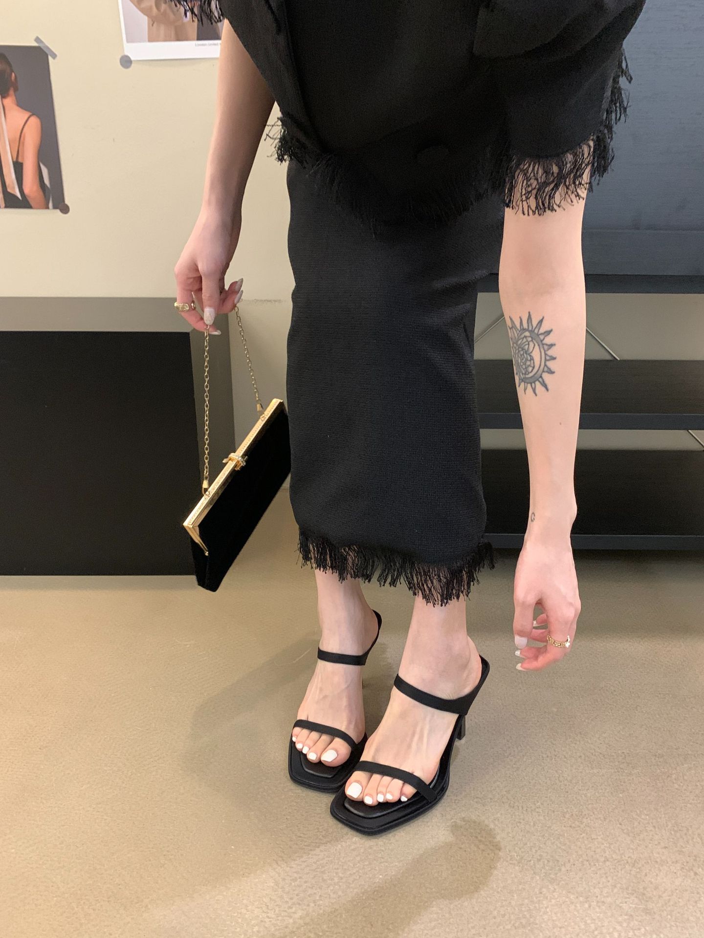 봄과 가을 2023 새로운 한국 스타일 청키 힐 오픈 토 모든 매치 여성용 심플 스퀘어 헤드 샌들과 슬리퍼 아우터 하이힐 비치스토어 가기