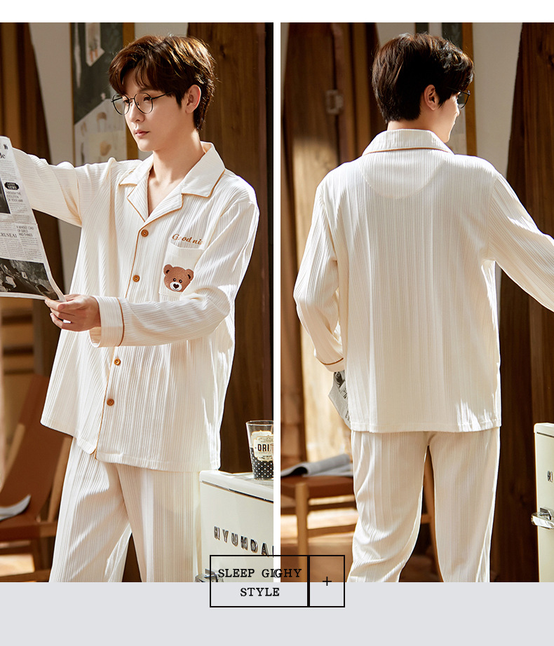 사슴 시간 커플 잠옷 여자 가슴 패드 면 봄과 가을 긴 소매 바지 플러스 사이즈 남자의 Houndstooth 가정 의류 세트스토어 가기