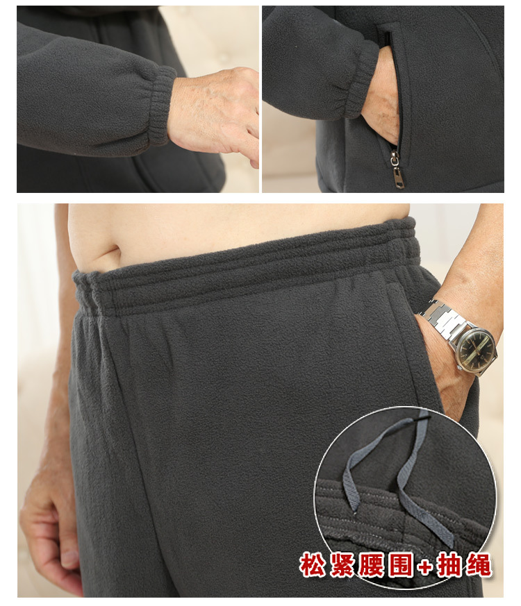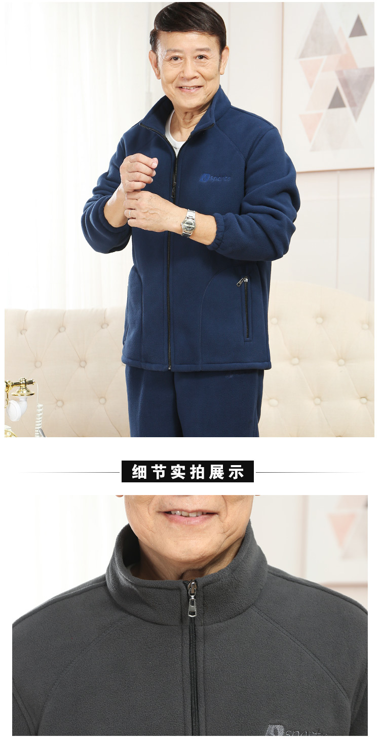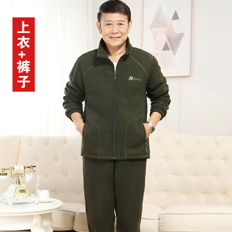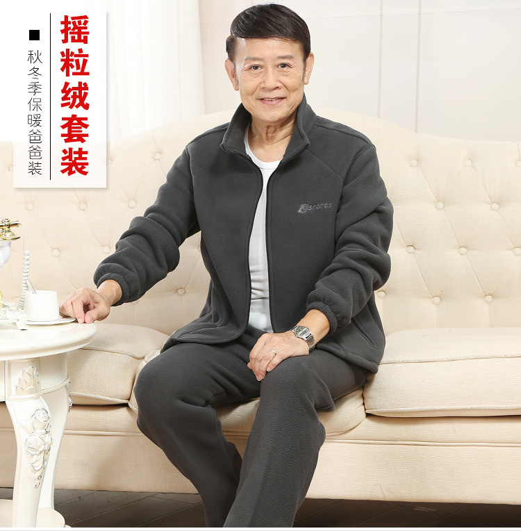 중년 및 노인 남성 의류 세트 가을과 겨울 폴라 플리스 코트와 양털 스웨터 바지 아빠 할아버지 의류 제조 업체 도매스토어 가기