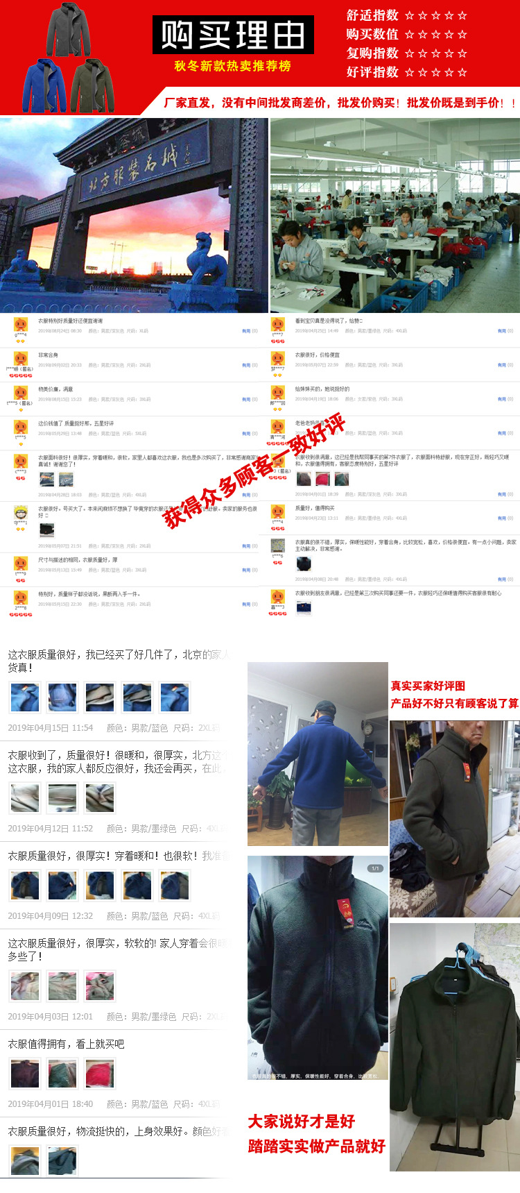 此款采用双面复合摇粒绒面料,保暖性相对单层摇粒绒面料保暖性好。