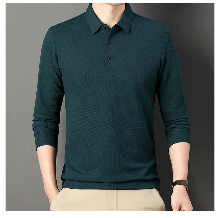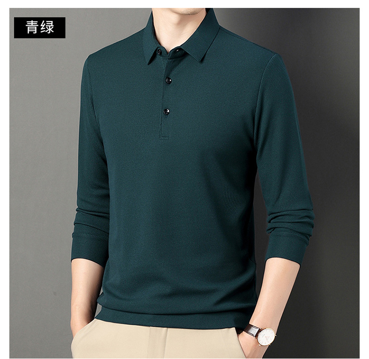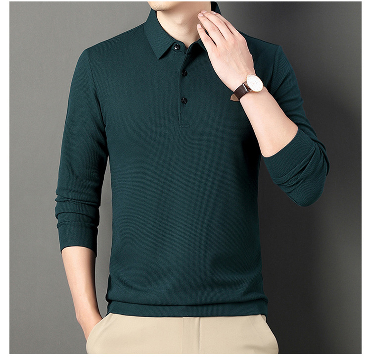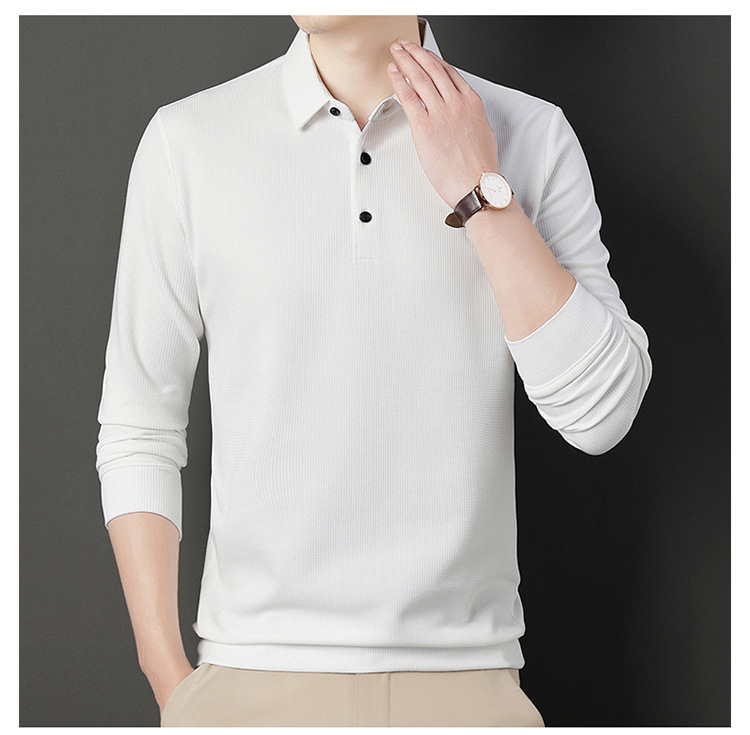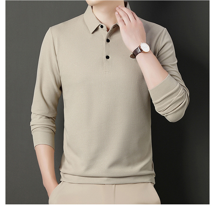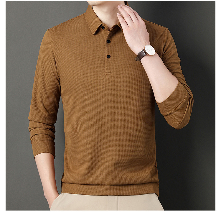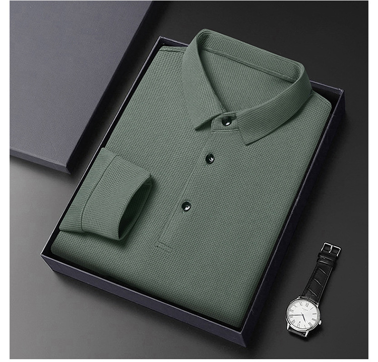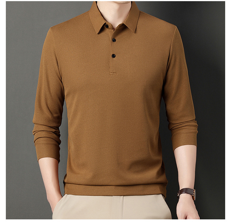 봄과 가을 남성 긴팔 새로운 솔리드 컬러 티셔츠 트렌디 캐주얼 루즈 아우터 라펠 와플 폴로 셔츠