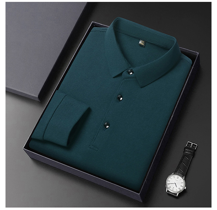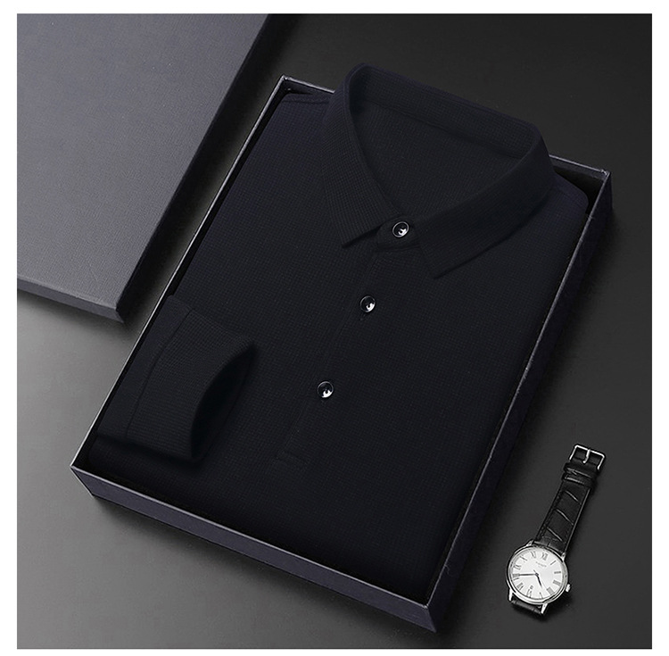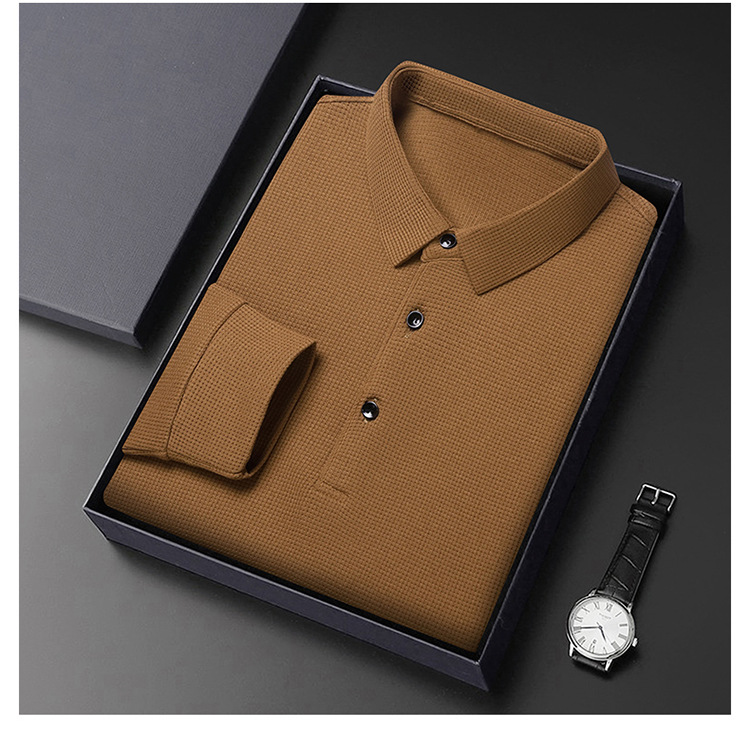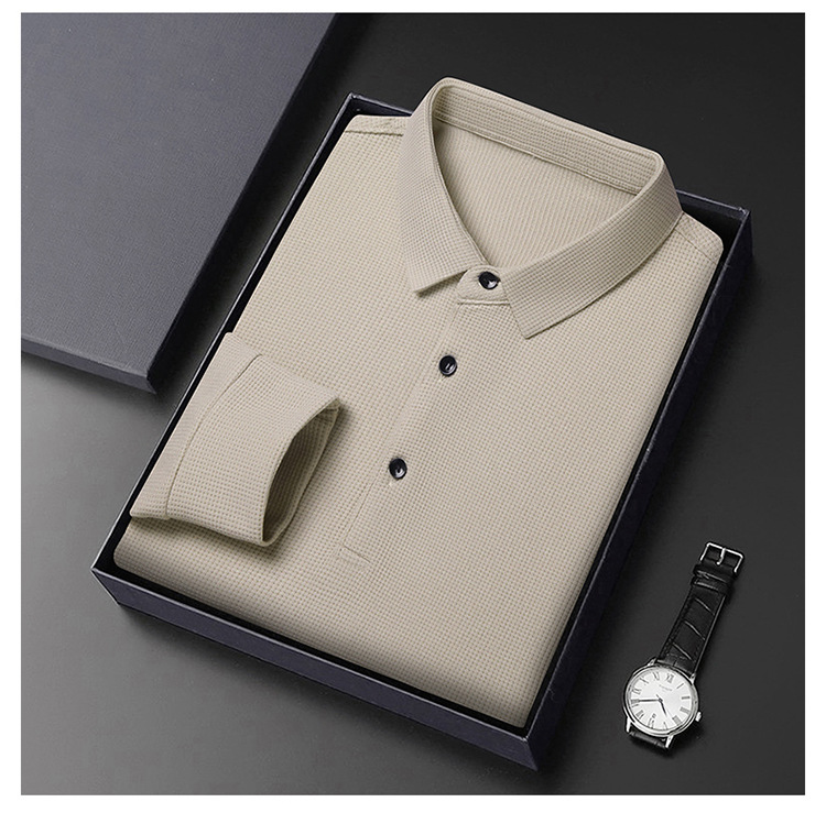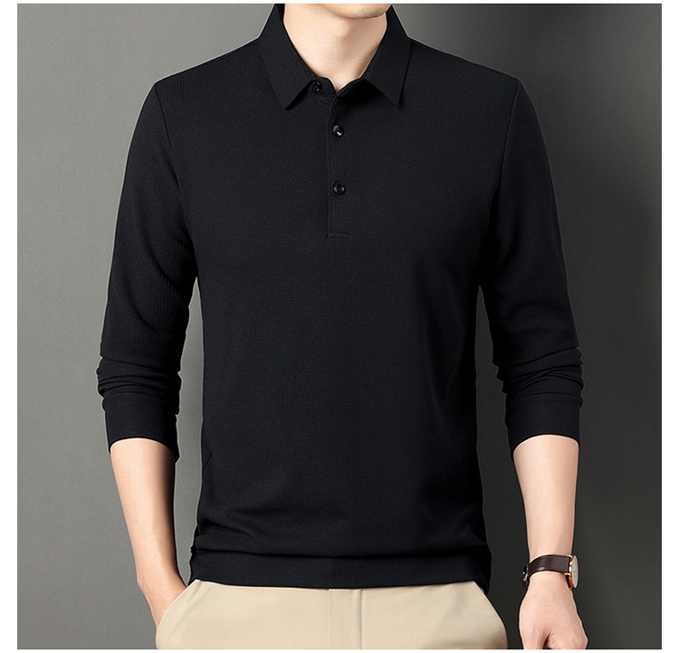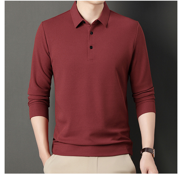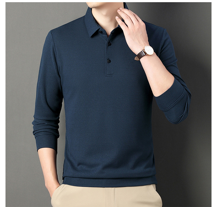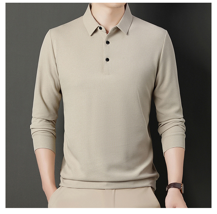 봄과 가을 남성 긴팔 새로운 솔리드 컬러 티셔츠 트렌디 캐주얼 루즈 아우터 라펠 와플 폴로 셔츠