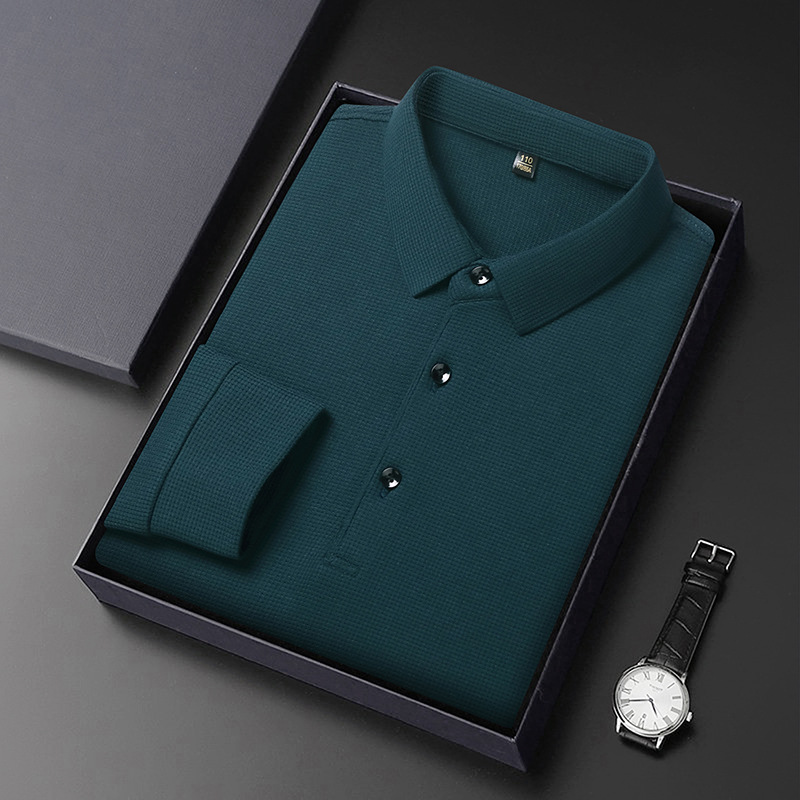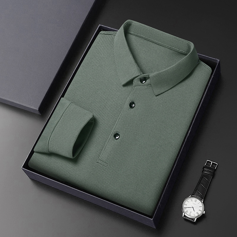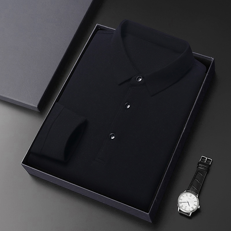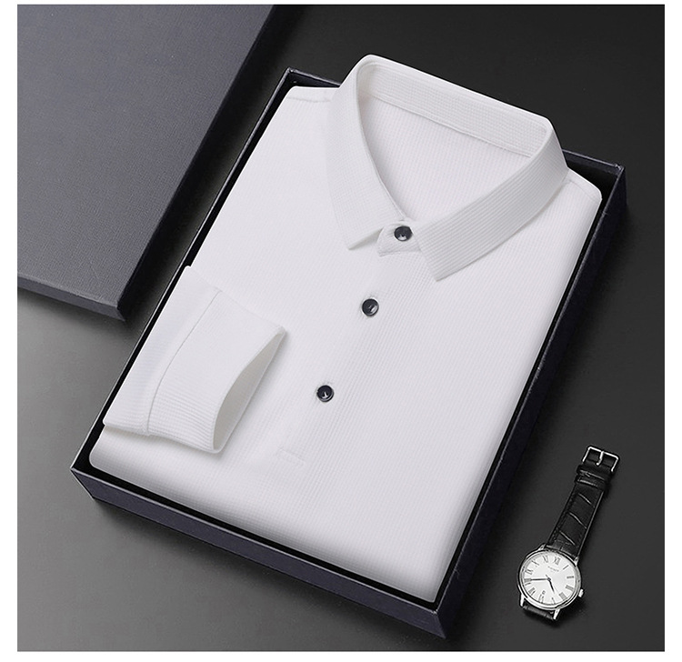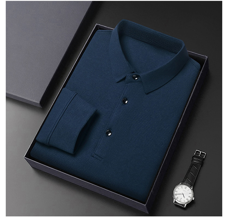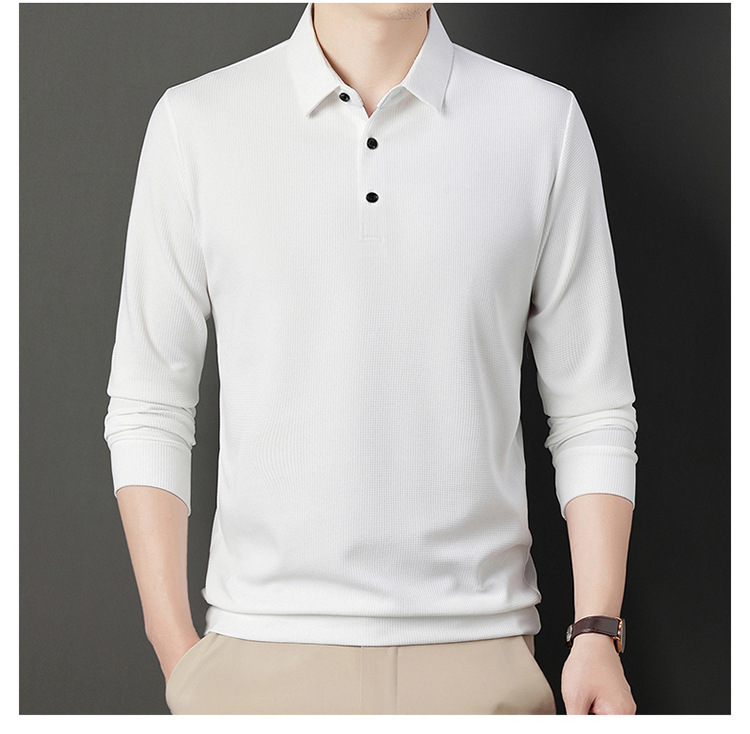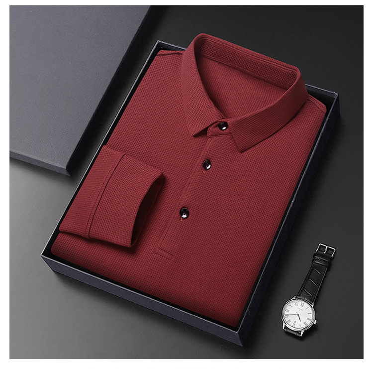 봄과 가을 남성 긴팔 새로운 솔리드 컬러 티셔츠 트렌디 캐주얼 루즈 아우터 라펠 와플 폴로 셔츠