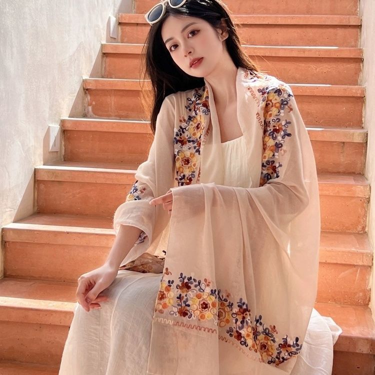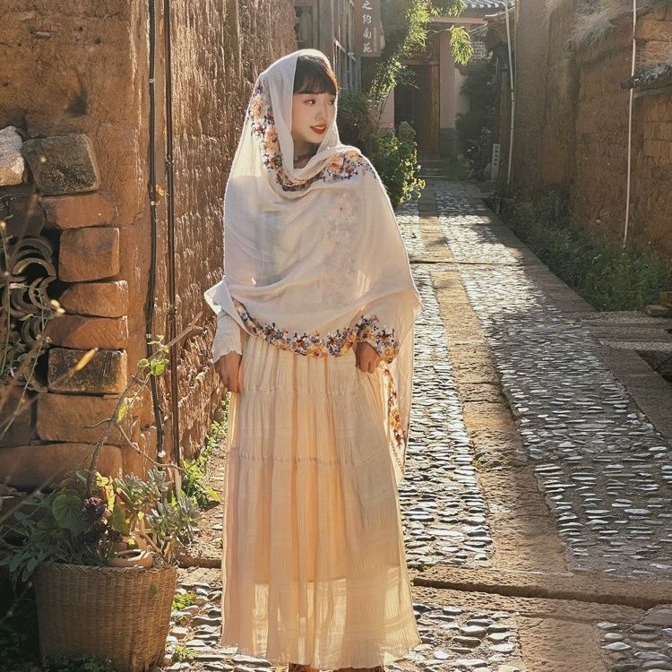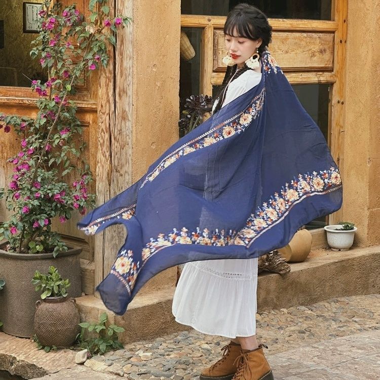 프레리 레드 에스닉 스타일 숄 스카프 여성용 여행복 및 사진 새로운 스타일 Yunnan Lijiang 자수 긴 스카프스토어 가기