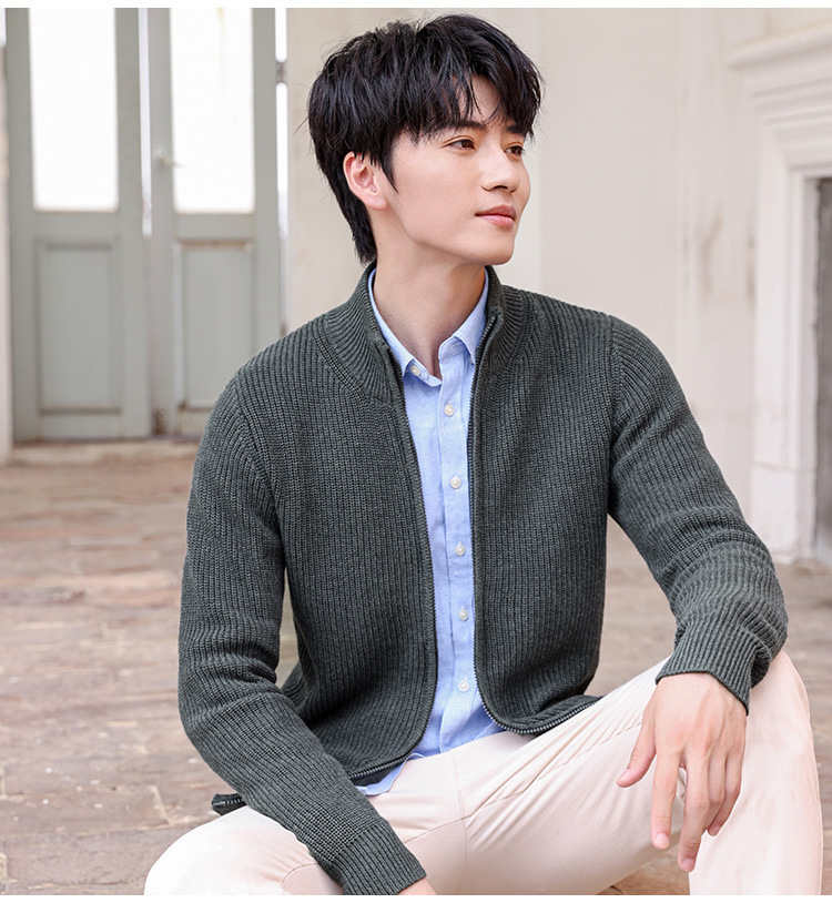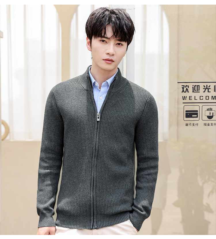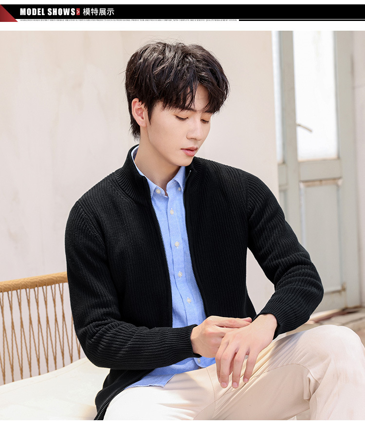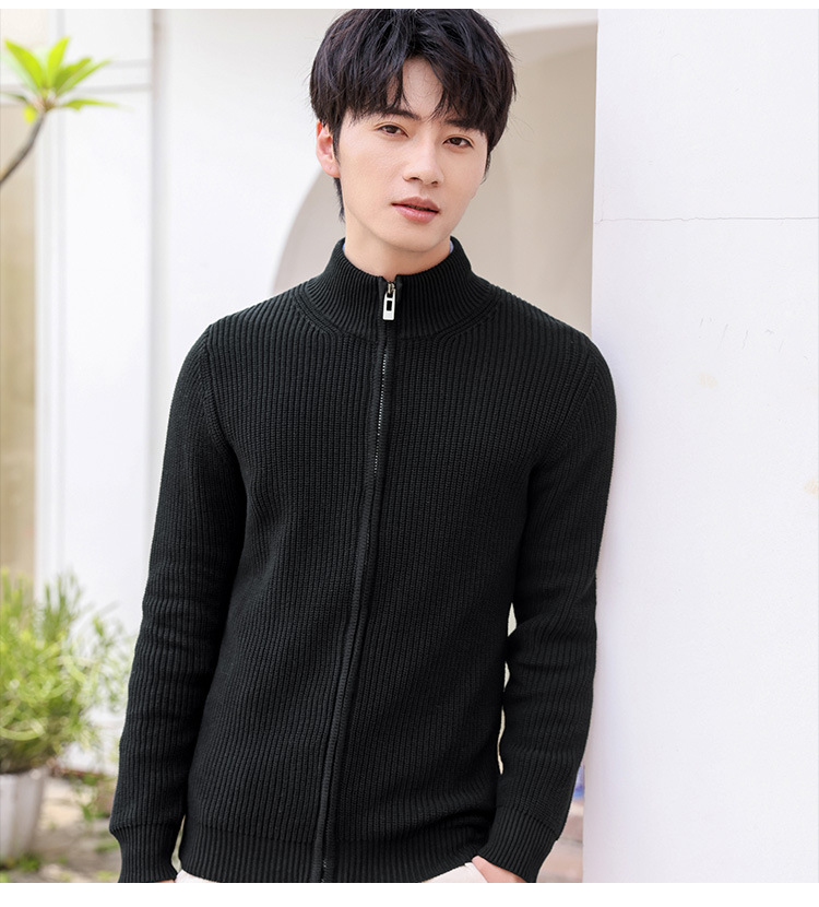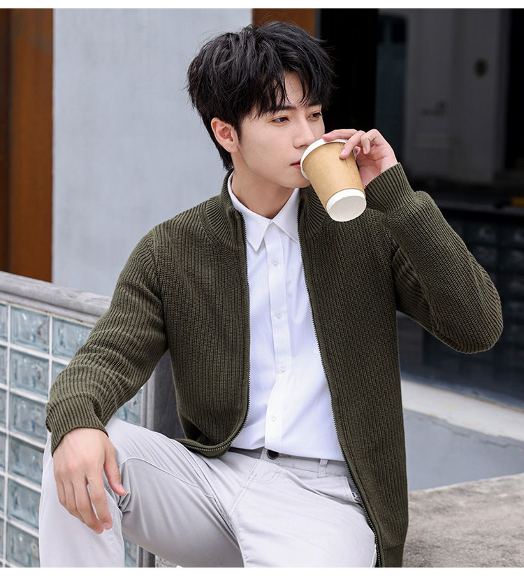 가을과 겨울 하프 하이 칼라 빗질 코튼 솔리드 컬러 지퍼 스웨터 재킷 니트웨어 한국 유행 청소년 남성 가디건