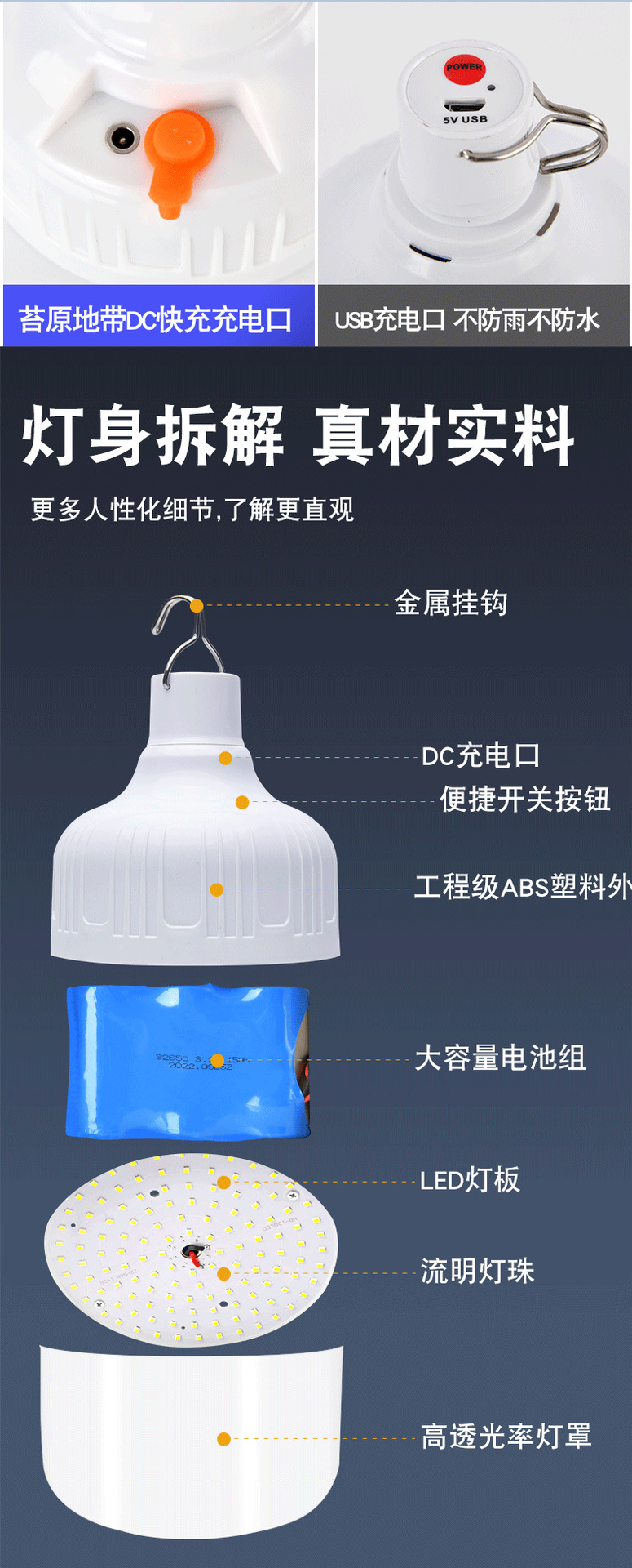 노점등 야시장등 해외 신제품 캠핑등 USB 전구 노점용 가정용 야외 충전식 조명등