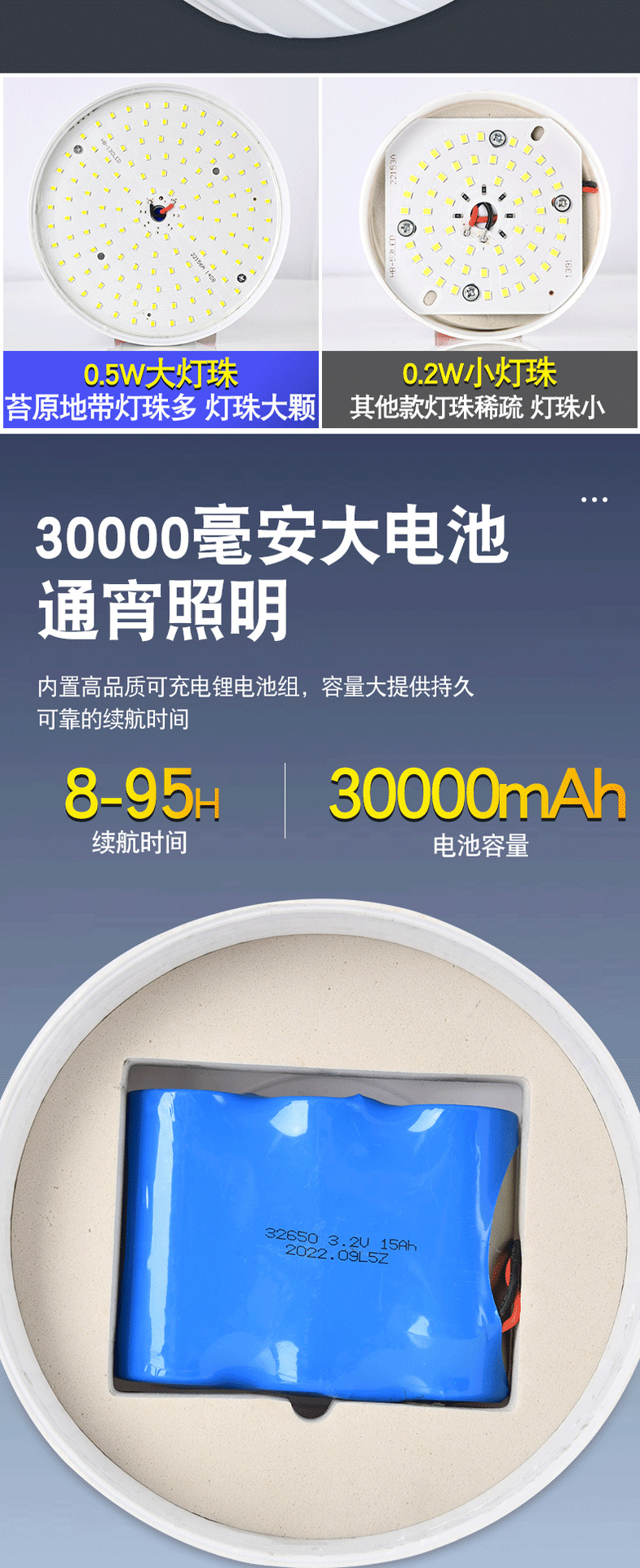 • [따뜻한 빛] 800W "12000 mA" 지구력 52 시간