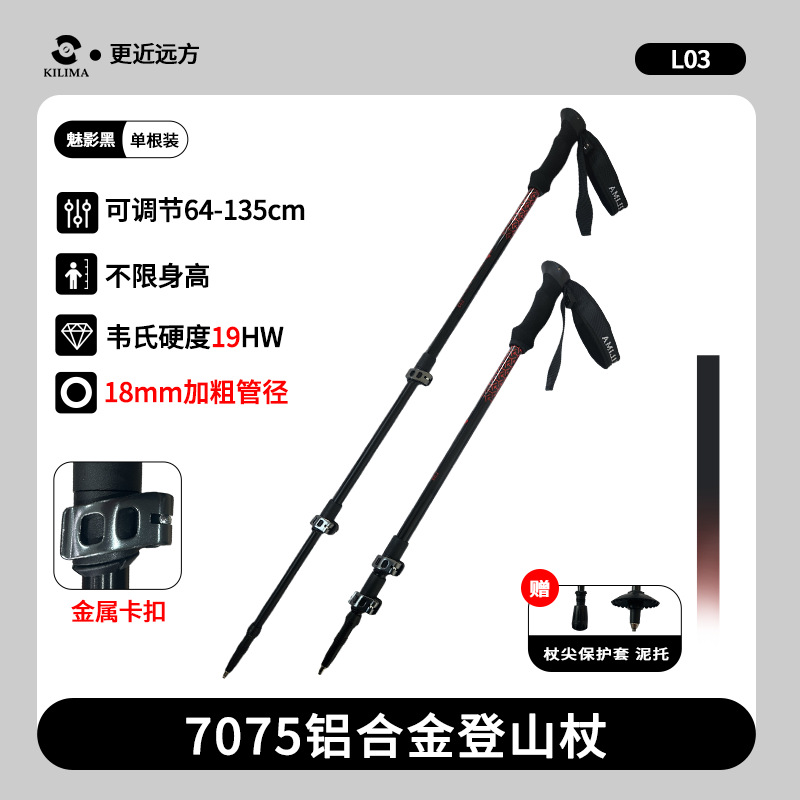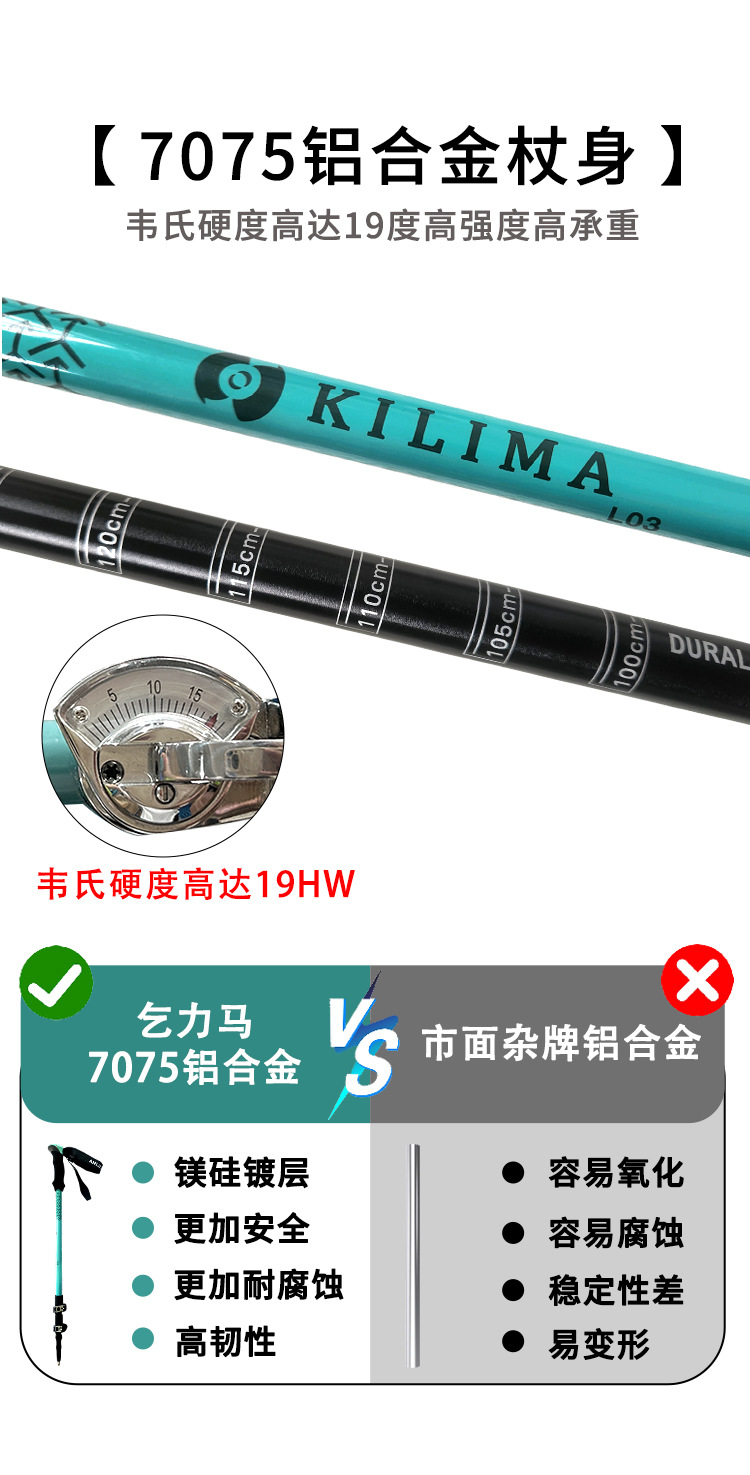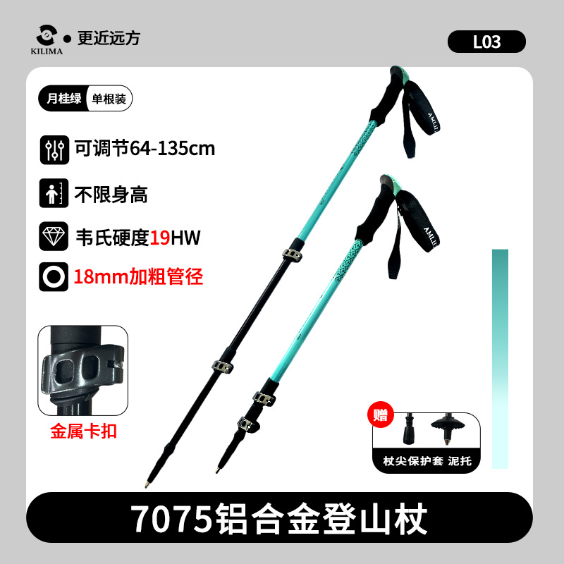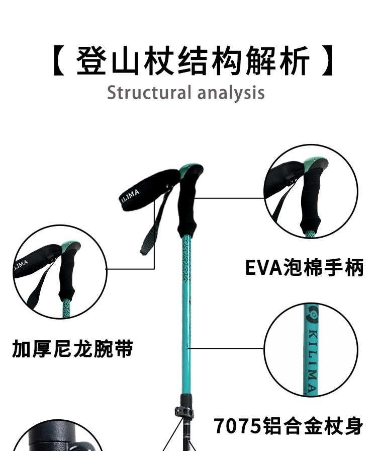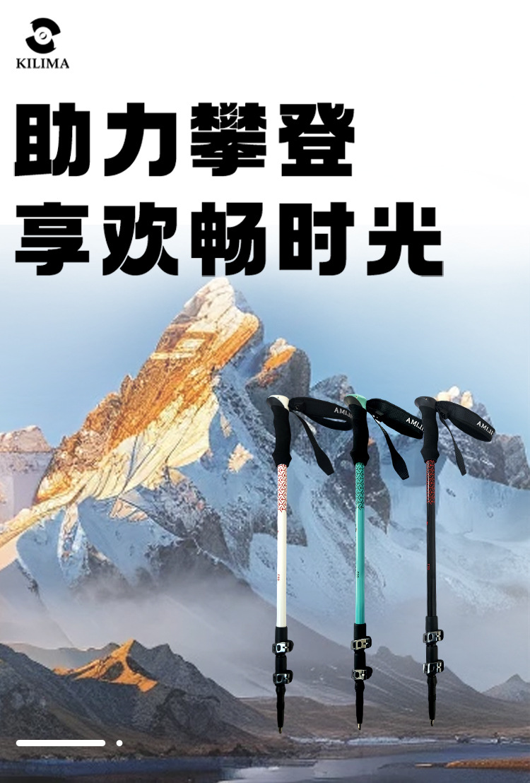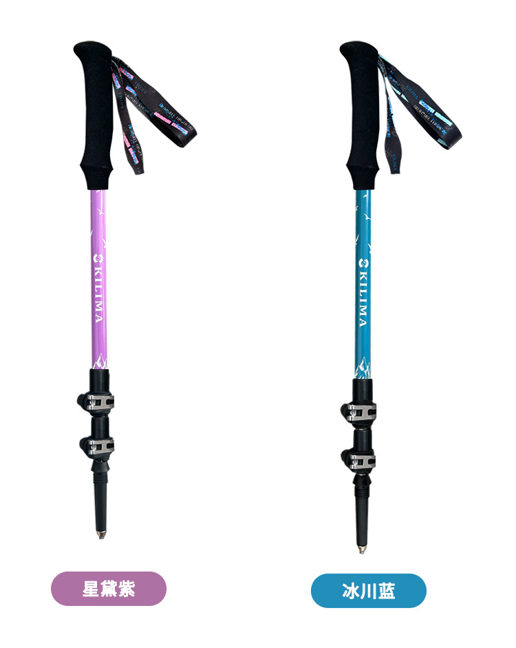 킬리마 세대 인쇄 알루미늄 합금 텔레스코픽 금속 버클 등산 극 야외 하이킹 스노우 마운틴