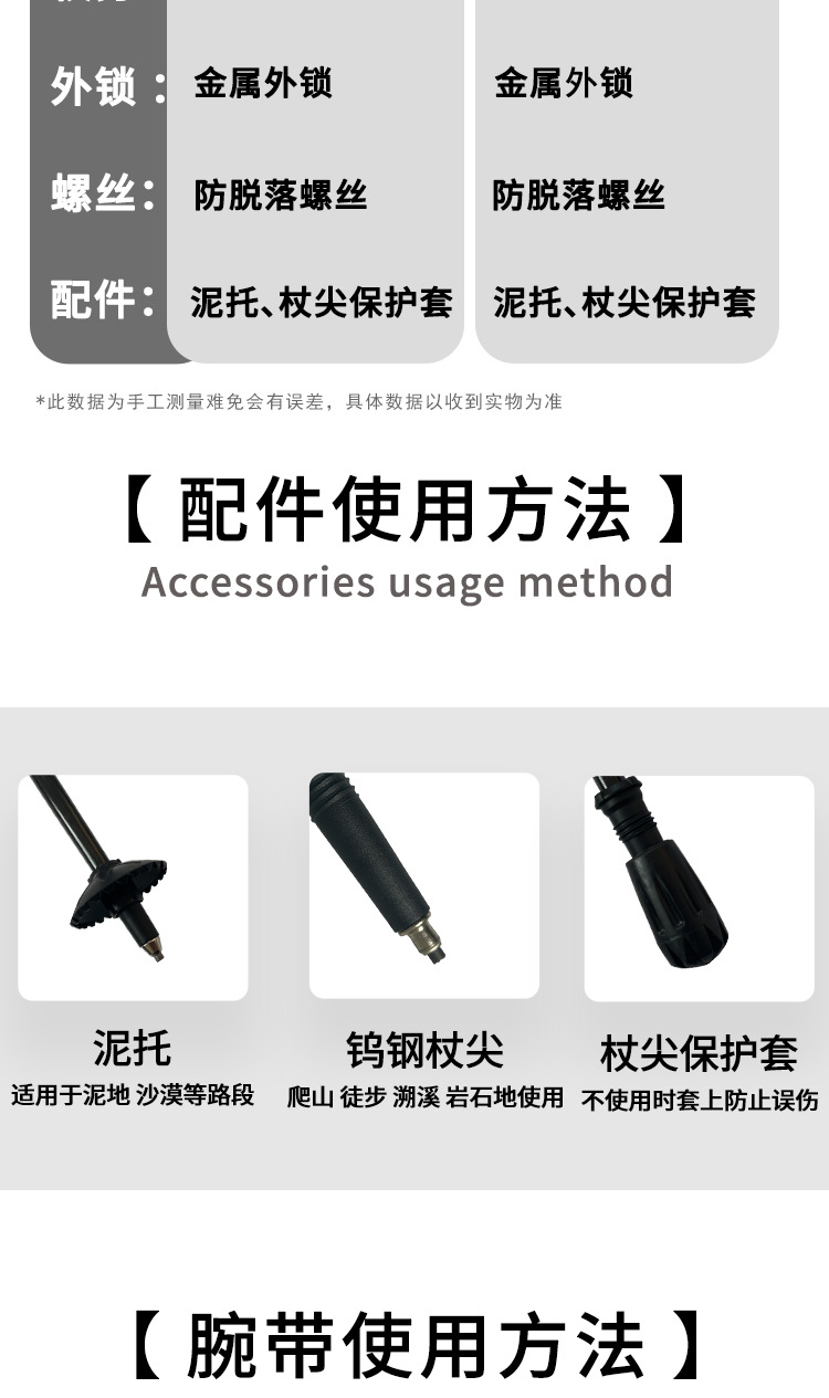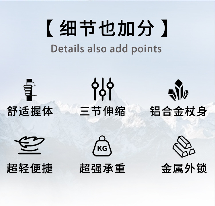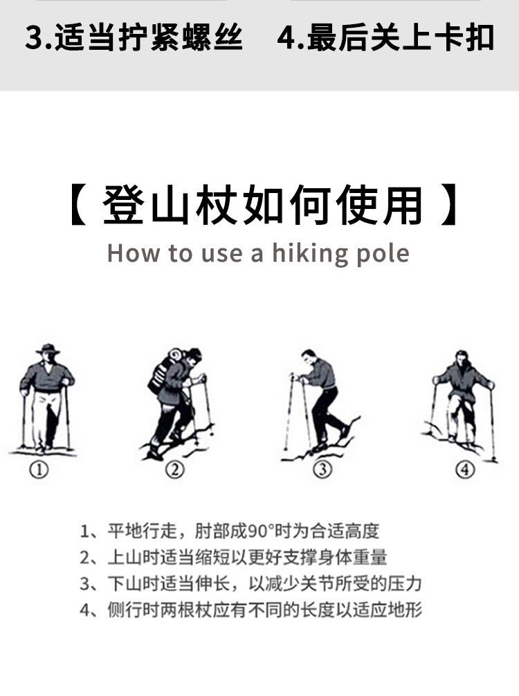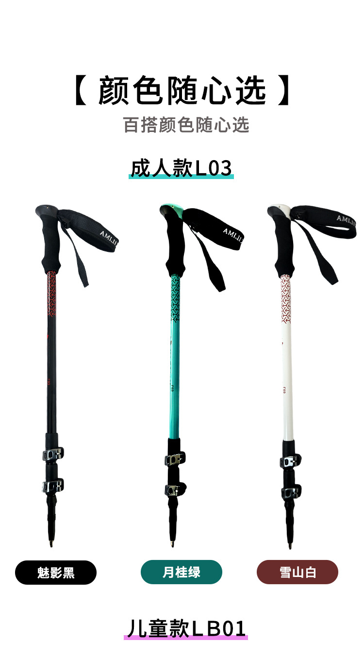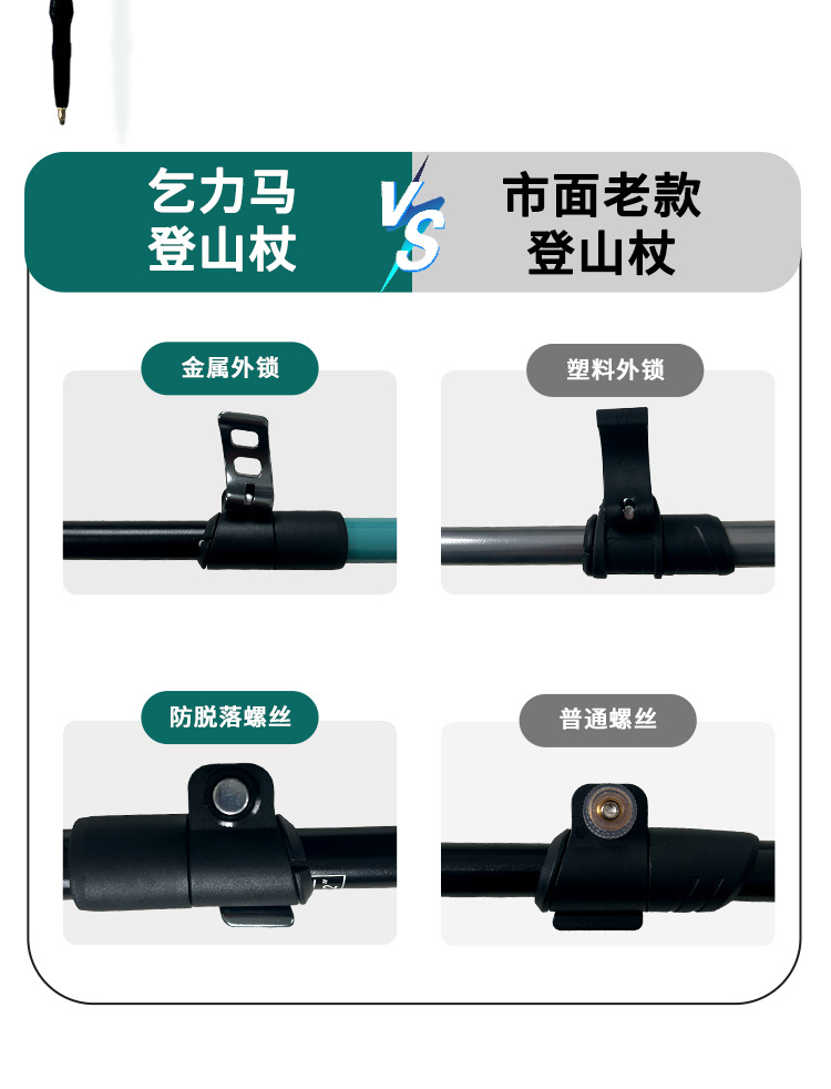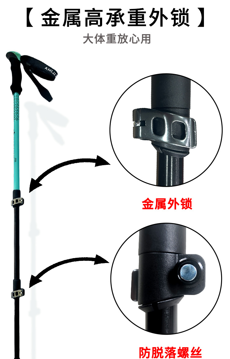 킬리마 세대 인쇄 알루미늄 합금 텔레스코픽 금속 버클 등산 극 야외 하이킹 스노우 마운틴