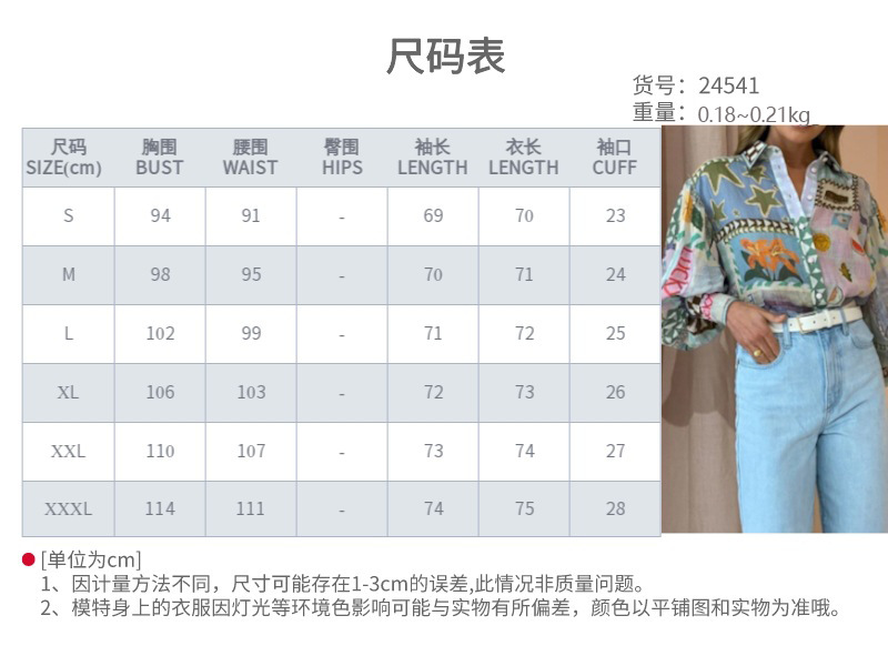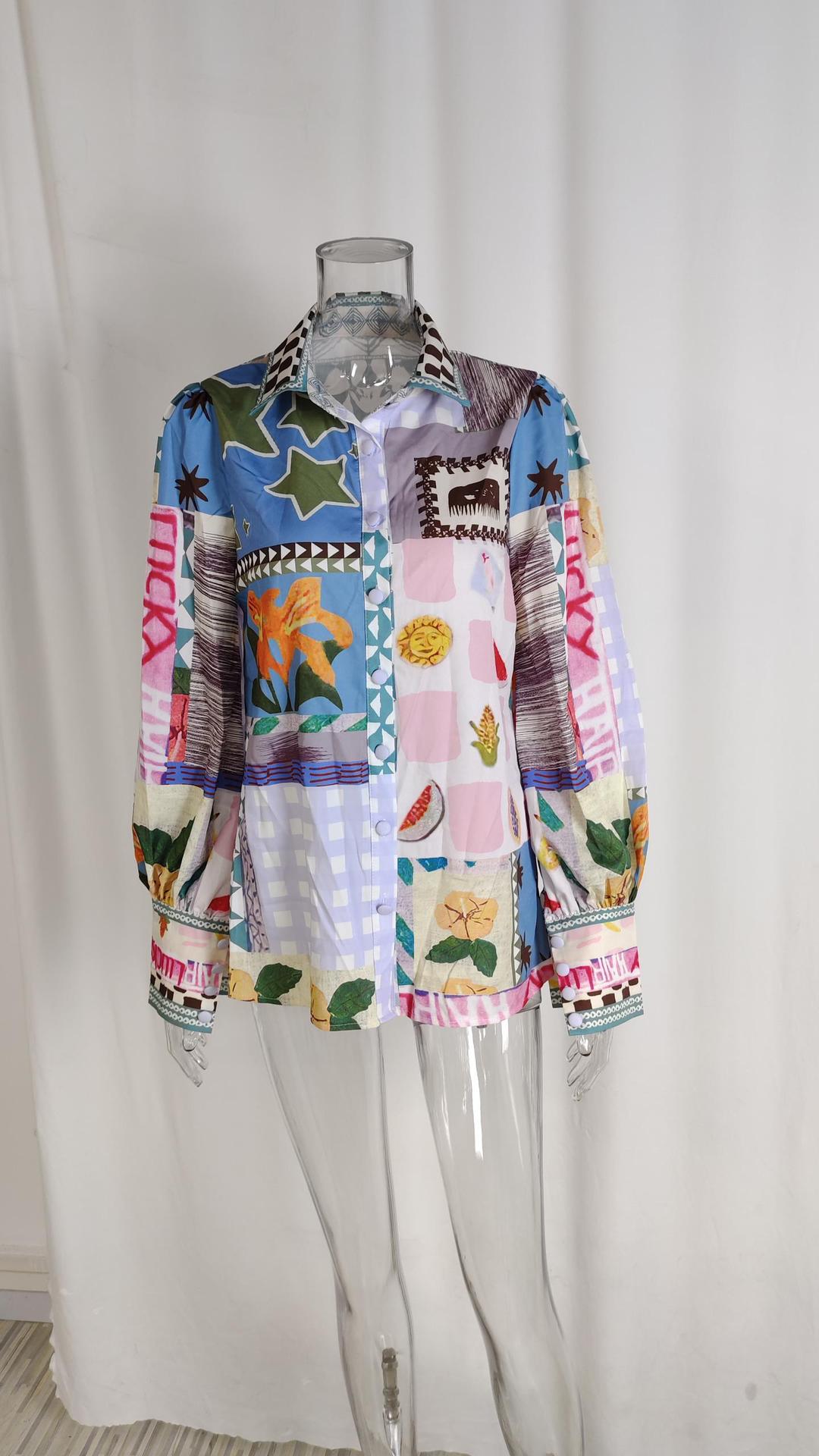 국경 2024 여름 유럽과 미국 여성의 새로운 우아한 우아한 옷깃 긴 소매 인쇄 캐주얼 패션 셔츠