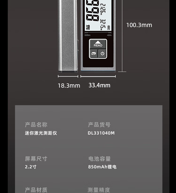 델리 미니 대형 스크린 레이저 범위 찾기 리튬 배터리 40m 적외선 전자 통치자 측정실 DL331040M스토어 가기