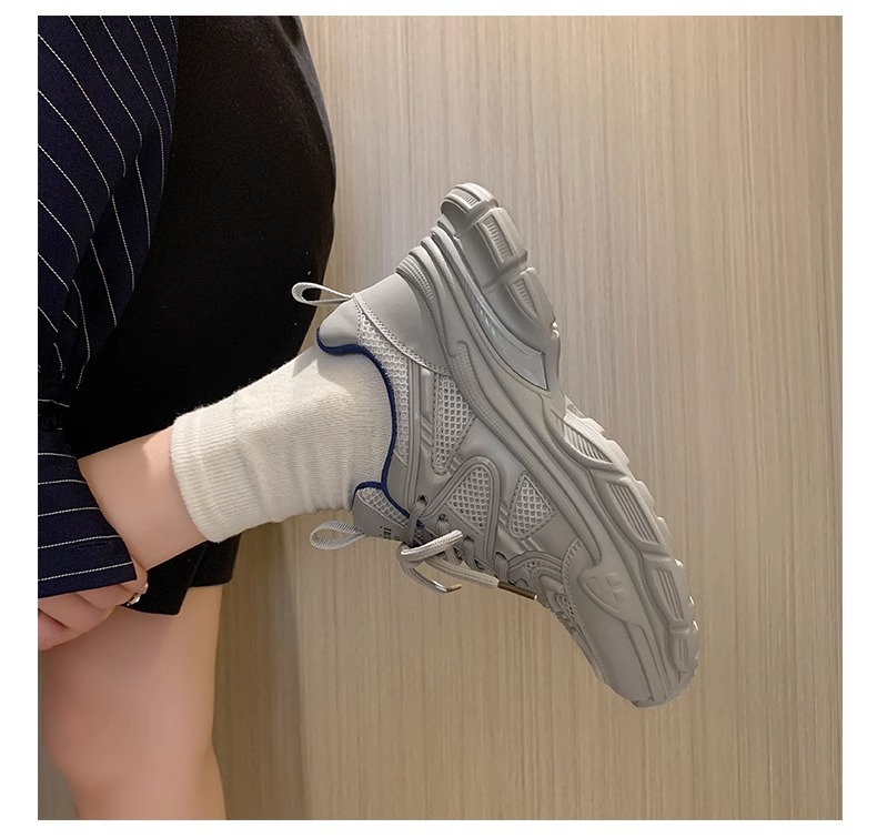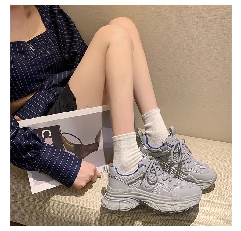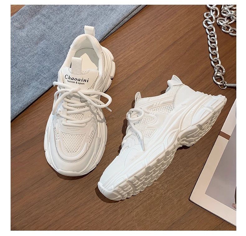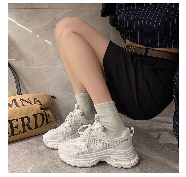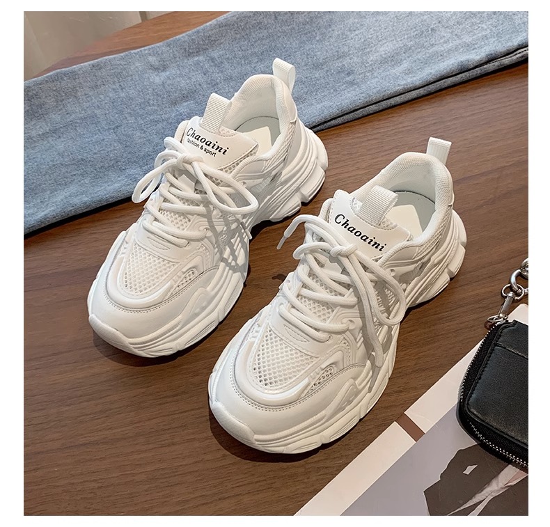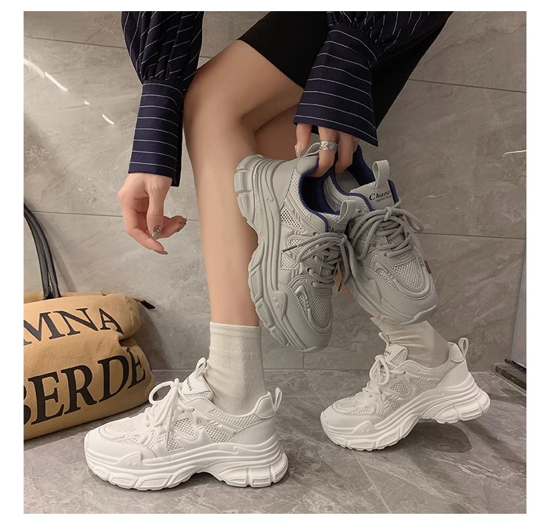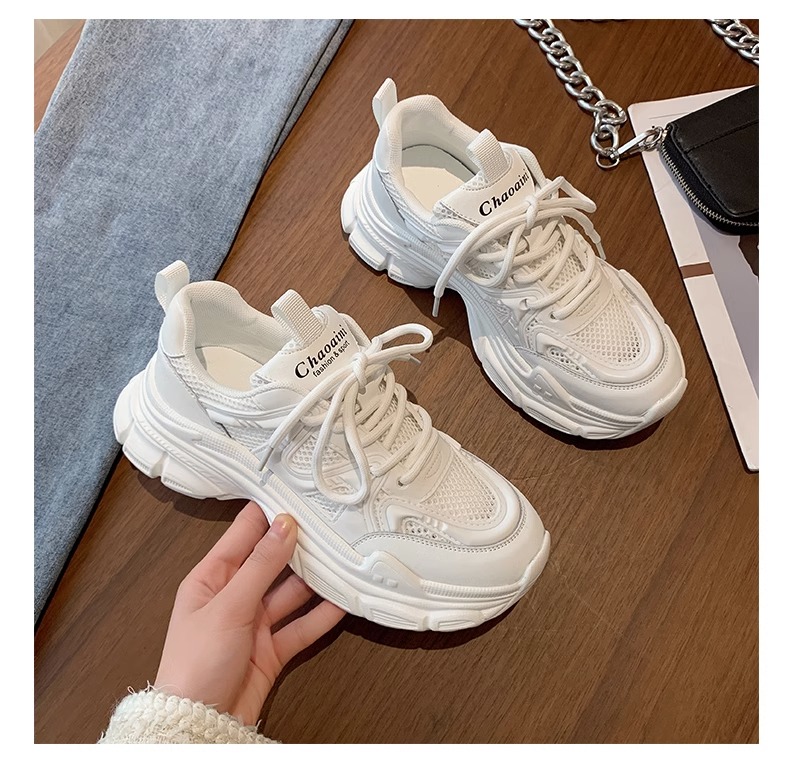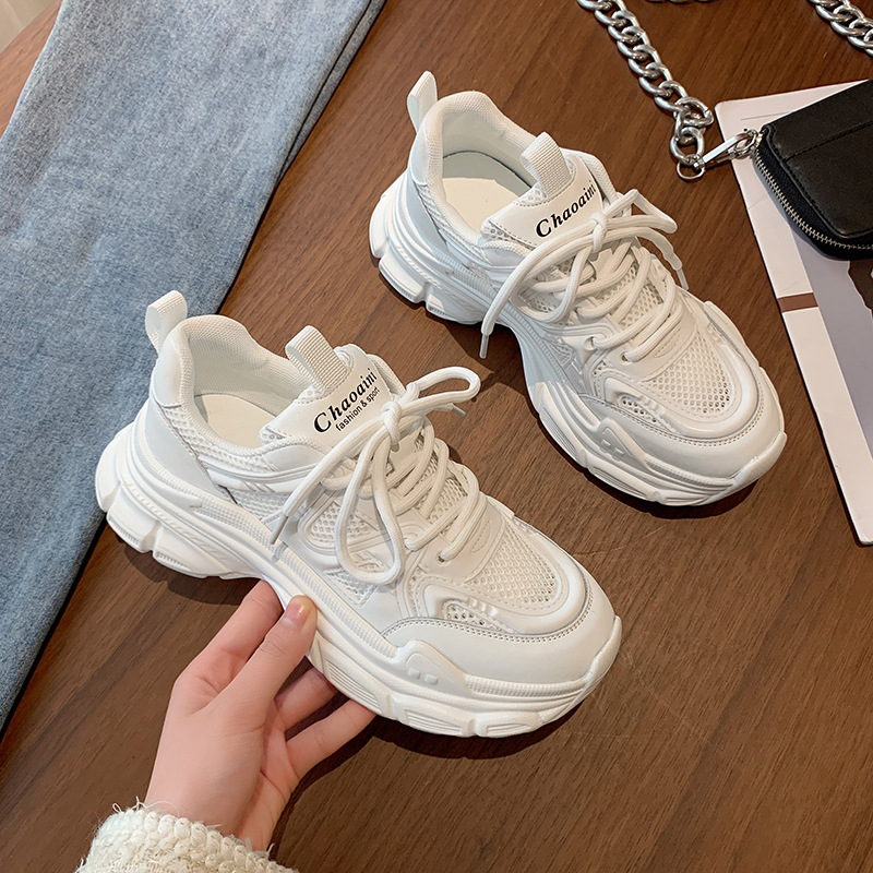 여성용 아빠 신발 2025 새로운 두꺼운 밑창 여성 신발 여름 메쉬 통기성 메쉬 신발 슬리밍 흰색 운동화 하이 컷스토어 가기