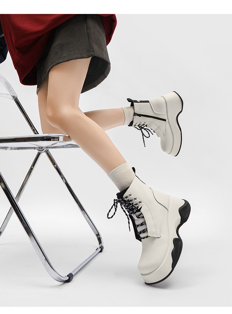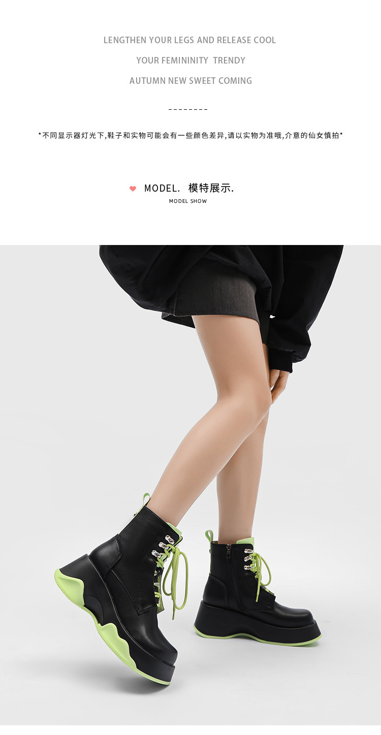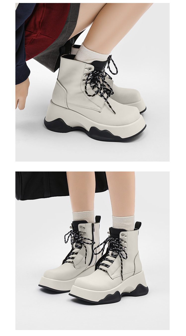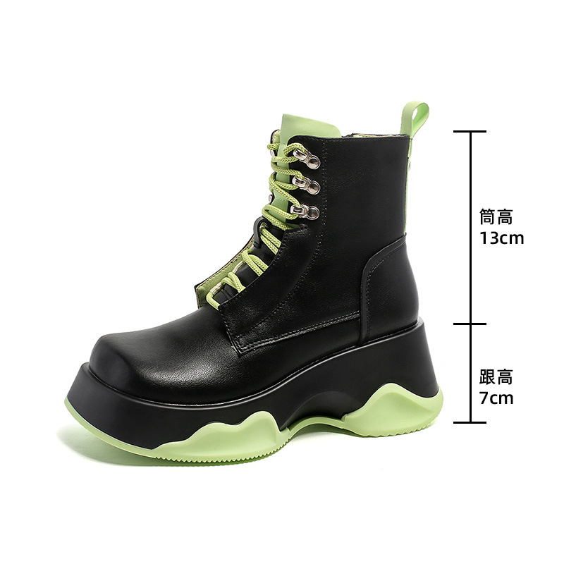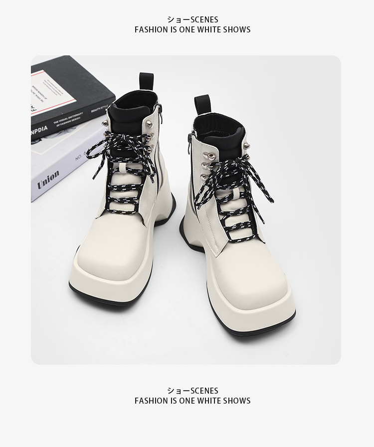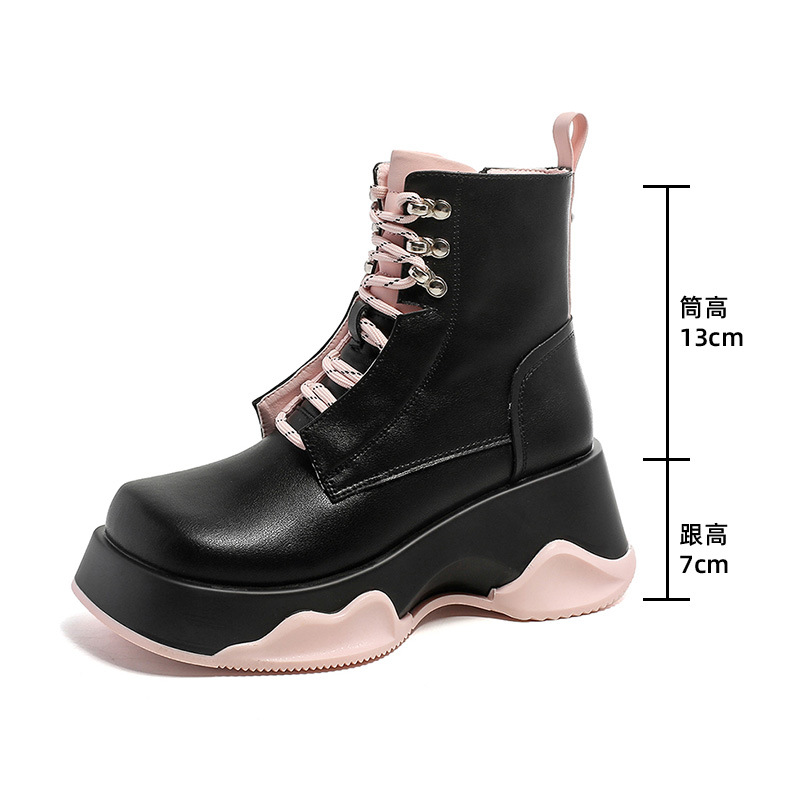 두꺼운 바닥 마틴 부츠 여성용 2023 새로운 큰 머리 영국 스타일 부츠 여성용 가죽 머핀 청키 힐 패션 짧은 부츠스토어 가기