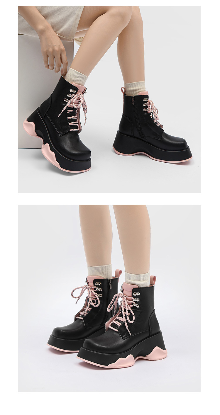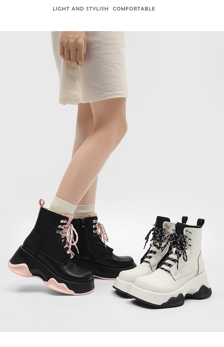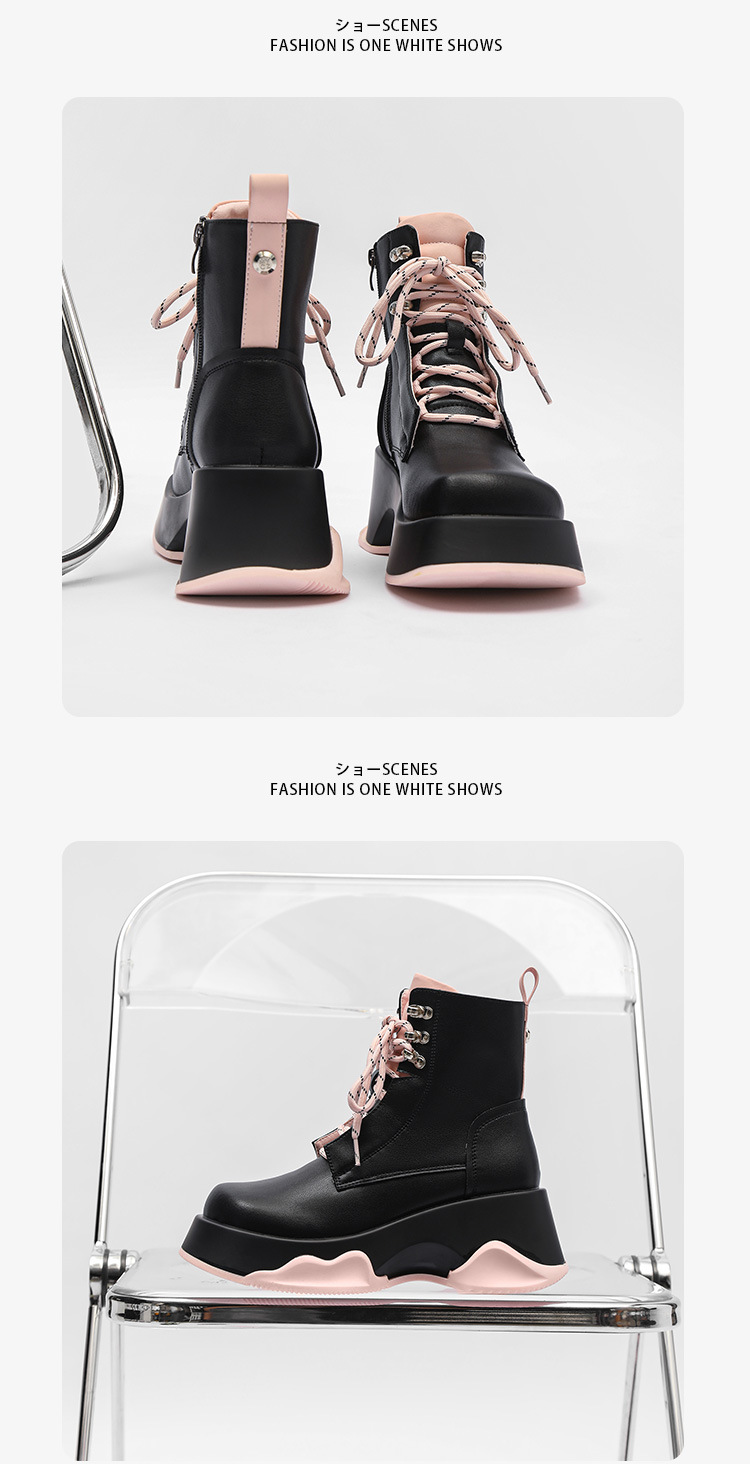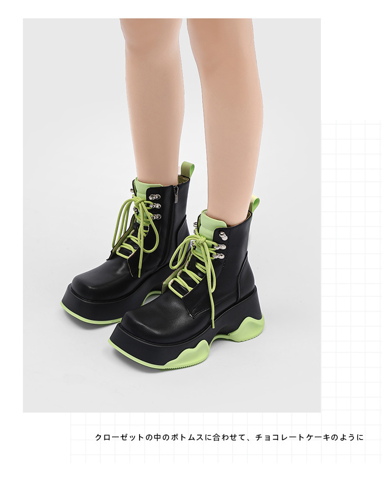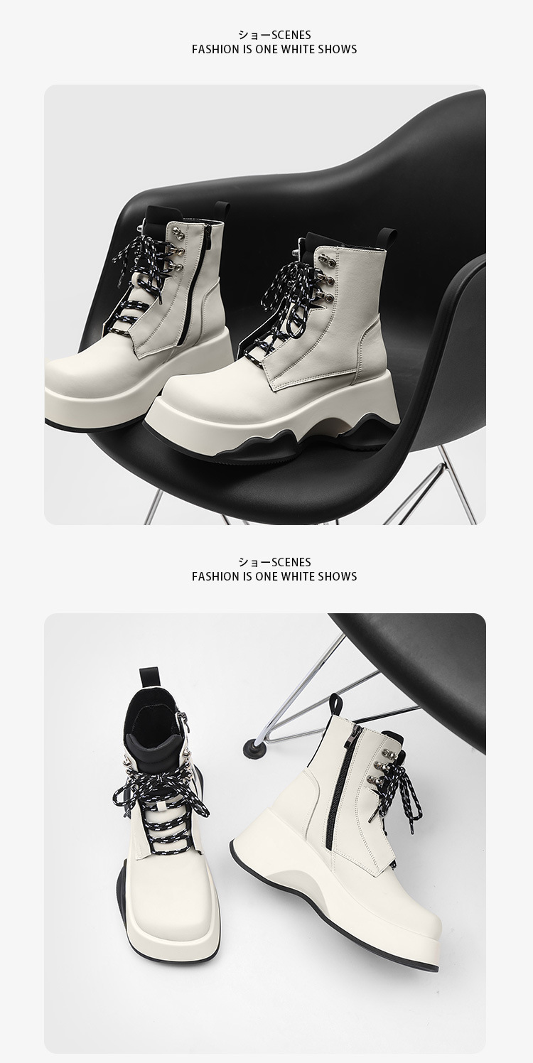 두꺼운 바닥 마틴 부츠 여성용 2023 새로운 큰 머리 영국 스타일 부츠 여성용 가죽 머핀 청키 힐 패션 짧은 부츠스토어 가기
