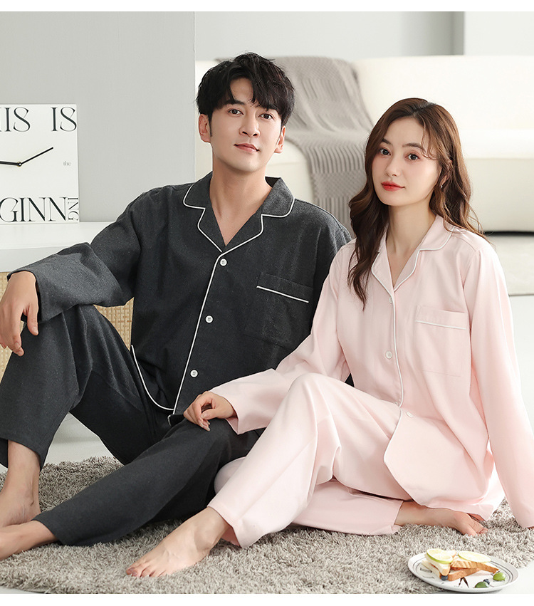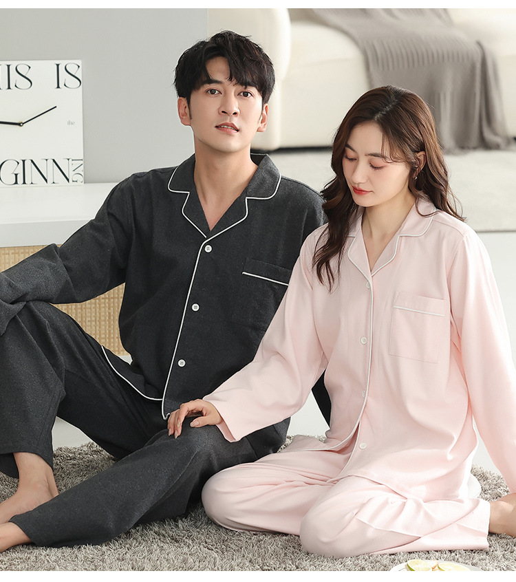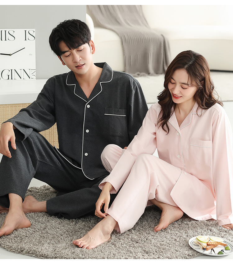 2023 커플 잠옷 새 봄, 가을, 겨울 고급 짠 솔질면 한국식 긴소매 홈웨어 슈트스토어 가기