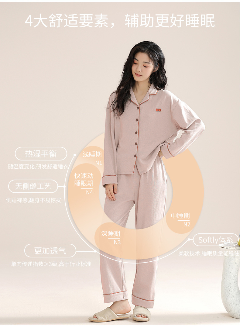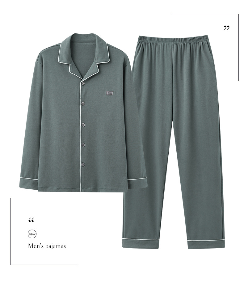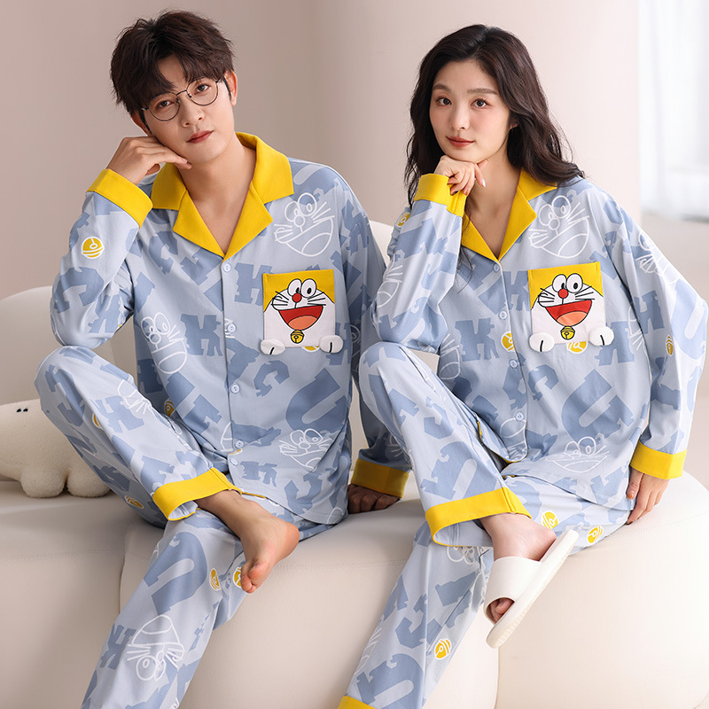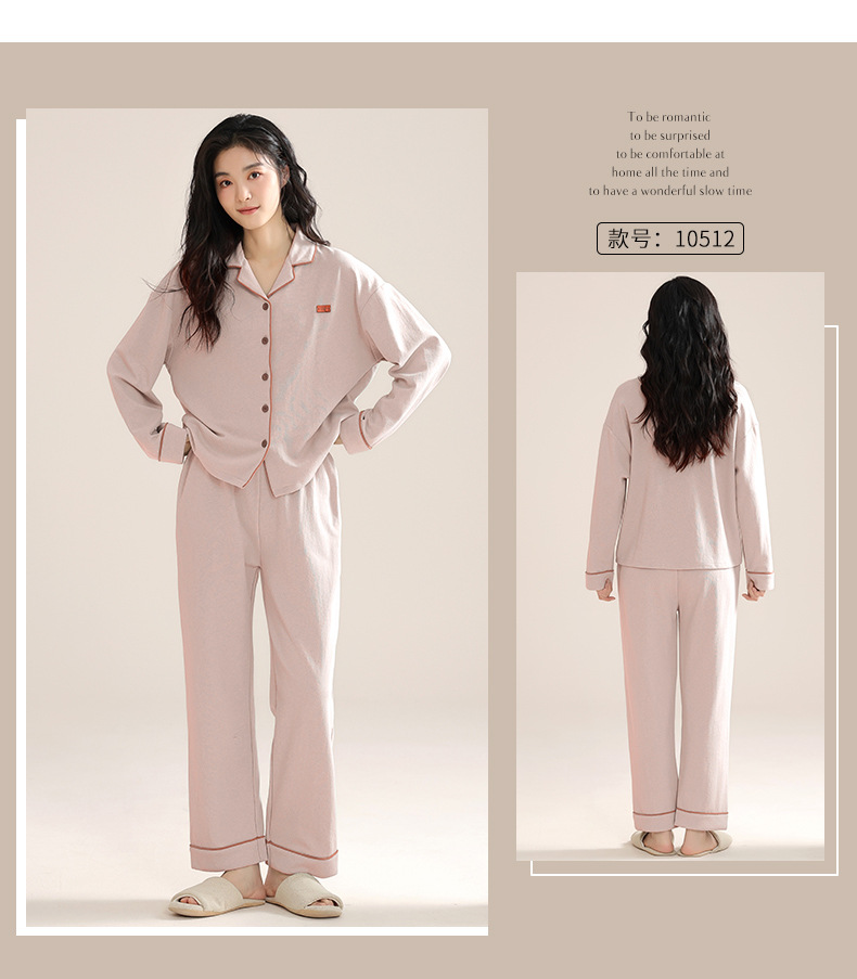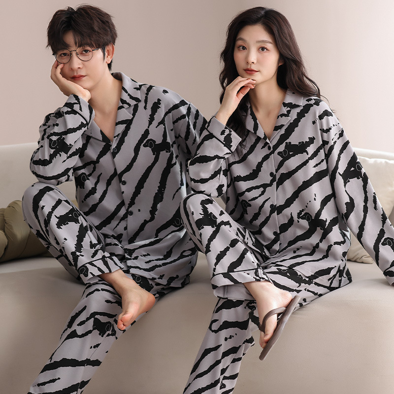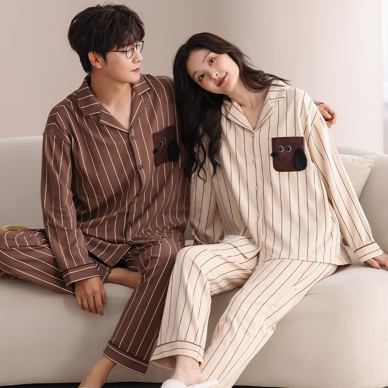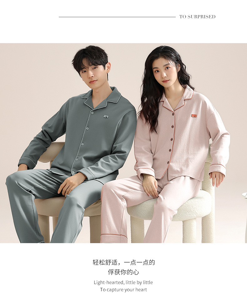 커플의 퓨어 코튼 파자마 남자 옷깃 긴 소매 바지 세트 가을 뉴 남성과 여성의 퓨어 코튼 솔리드 컬러 카디건 파자마스토어 가기