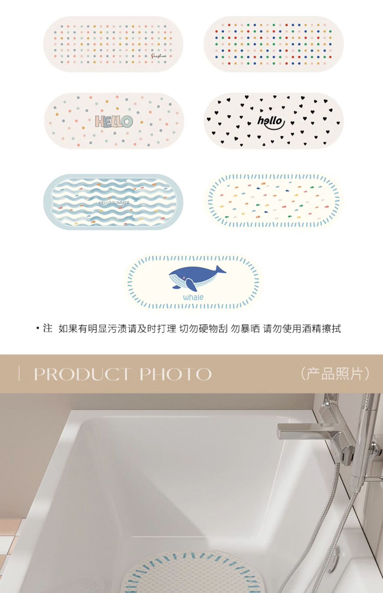 Pu Shang 욕조 미끄럼 방지 매트 욕실 낙하 방지 매트 샤워실 어린이 및 노인 목욕 샤워 발 매트 흡입 컵 매트