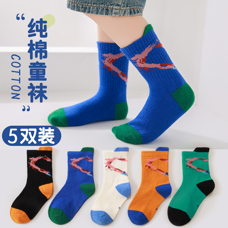 어린이 양말, 중대형 어린이, 소년 소녀, 봄, 가을 시즌 중반 종아리 양말, 트렌디한 스타킹, 귀 리프팅 스포츠 면 양말