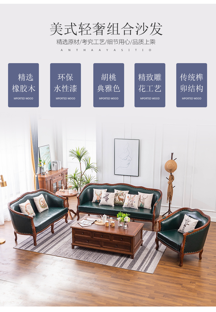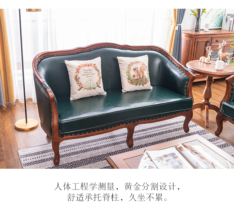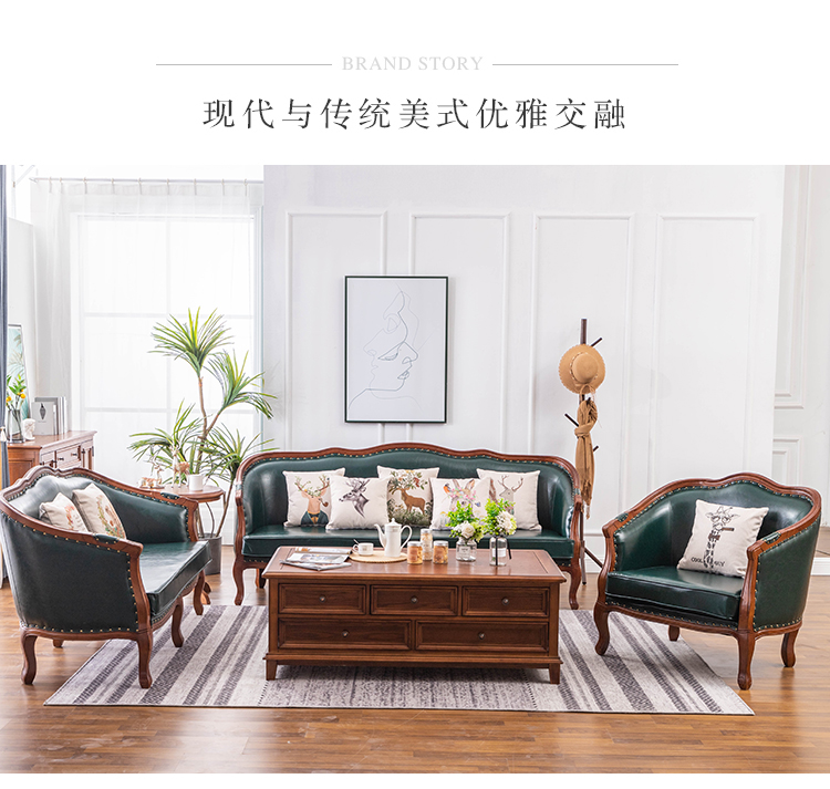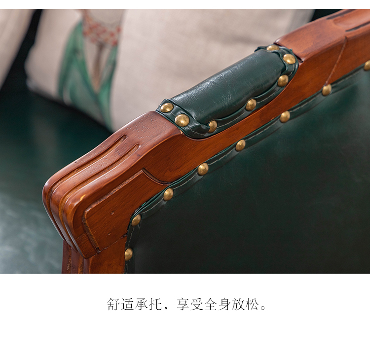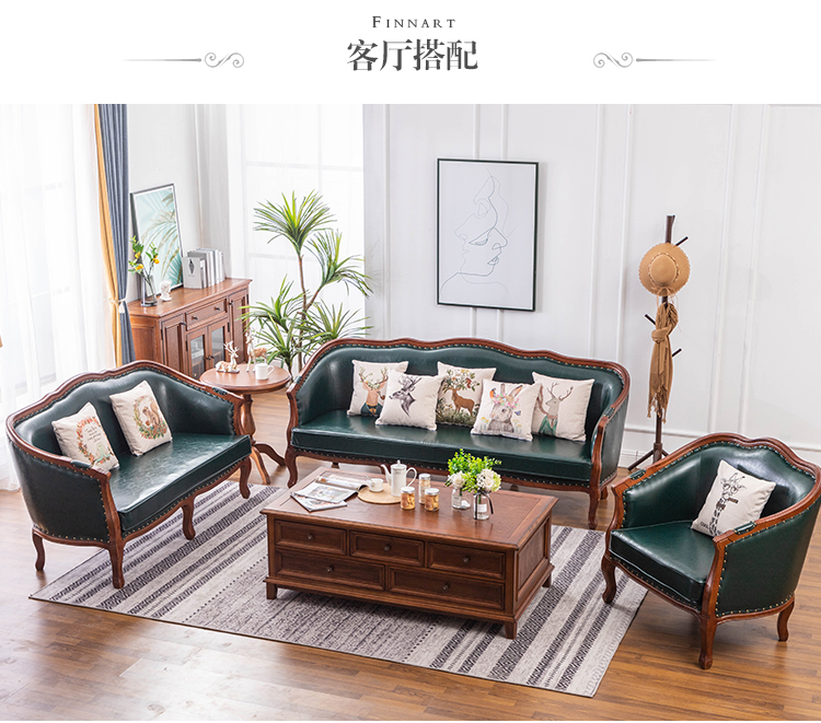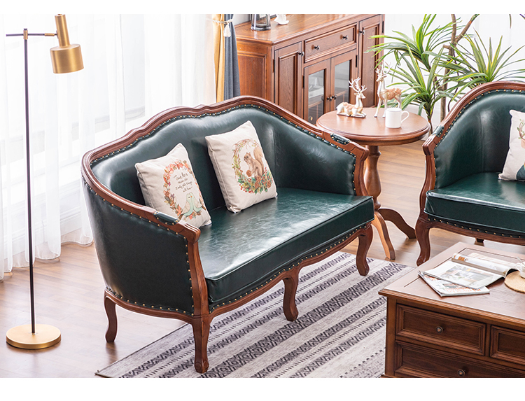 아메리칸 스타일 컨트리 전체 단단한 나무 가죽 소파 레트로 가죽 패브릭 유럽 스타일 소파 작은 아파트 거실 조합 가구스토어 가기