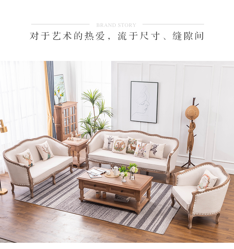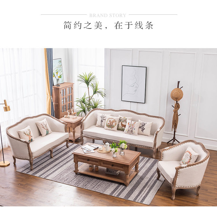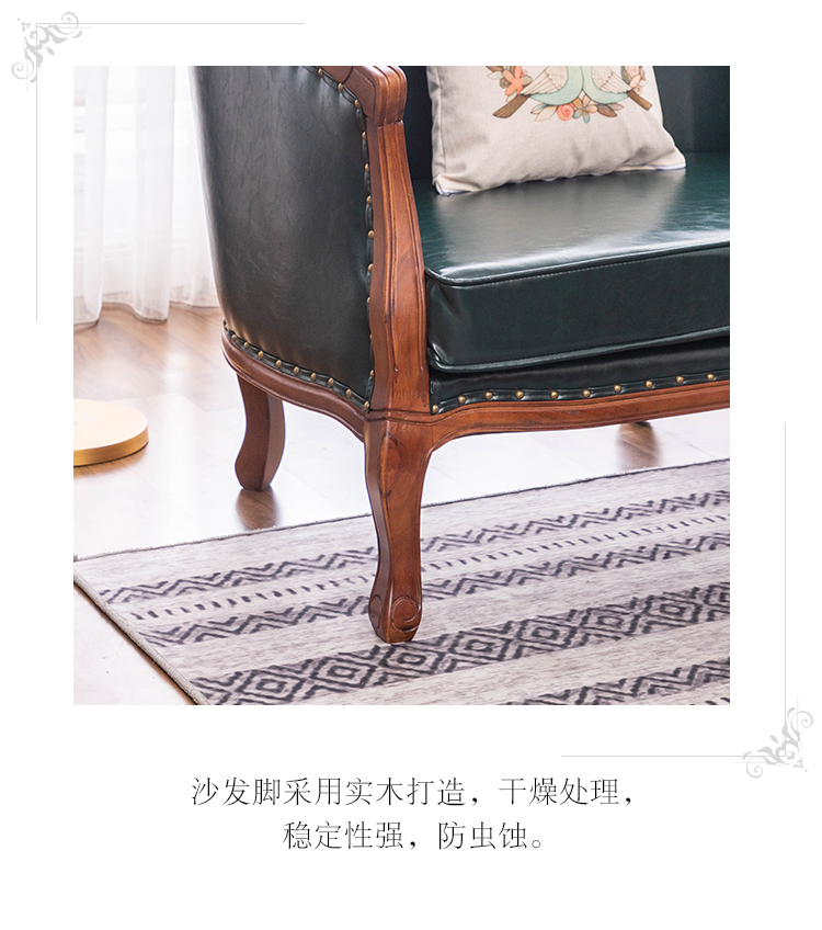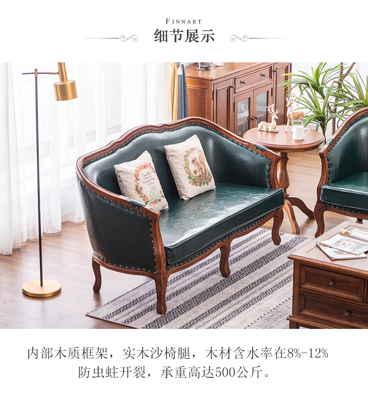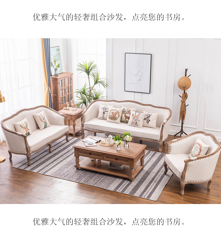 아메리칸 스타일 컨트리 전체 단단한 나무 가죽 소파 레트로 가죽 패브릭 유럽 스타일 소파 작은 아파트 거실 조합 가구스토어 가기