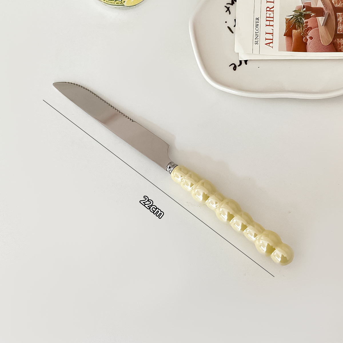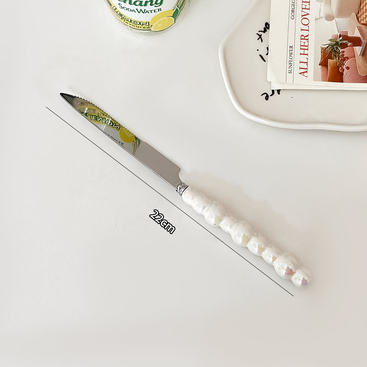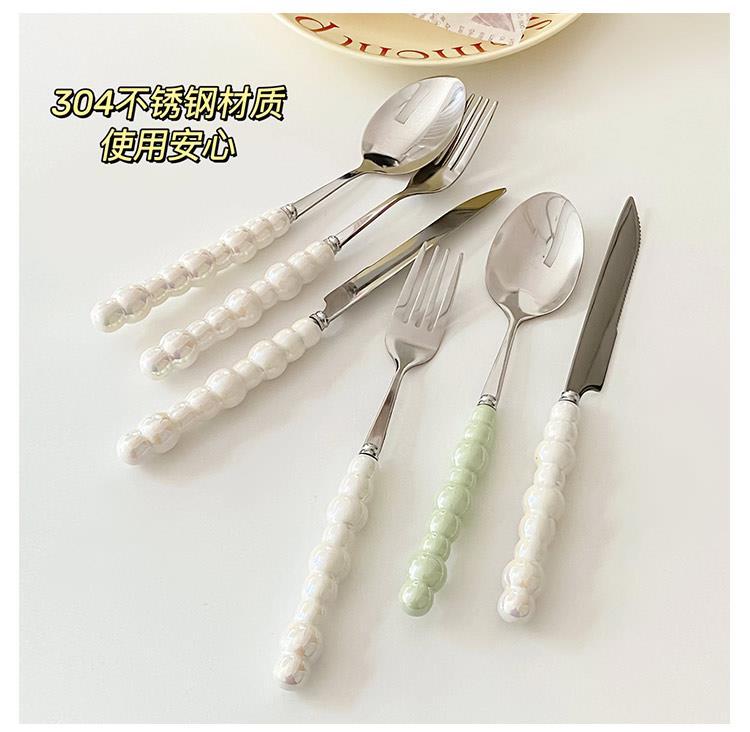 스타일 진주 세라믹 서양 음식 숟가락 높은 외관 가치 가정용 스테인레스 스틸 칼과 포크 스푼 스테이크 스파게티 요구르트 디저트 스푼