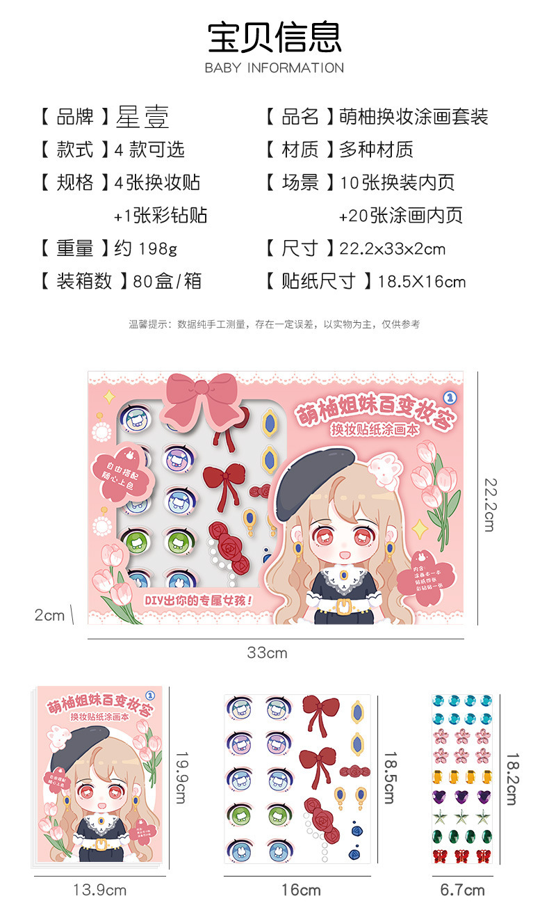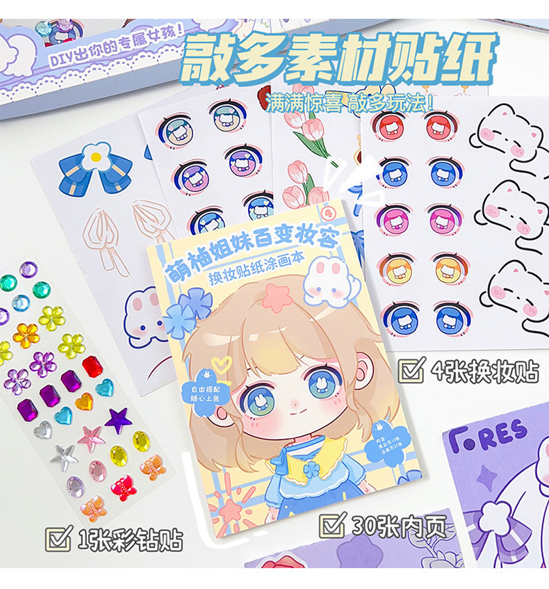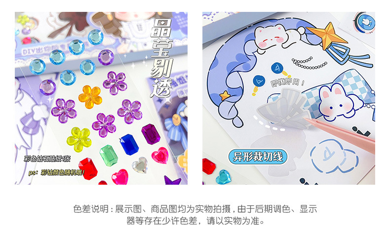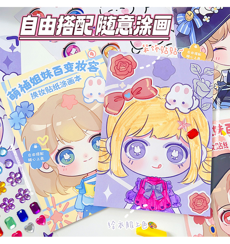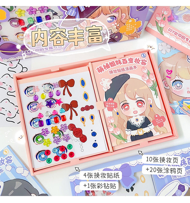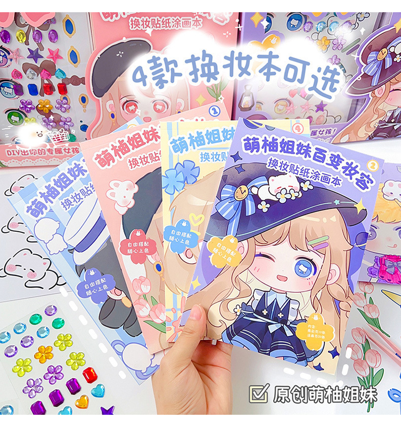 공주 원피스 스티커 세트 선물 상자 어린이 DIY 색상 채우기 그림 낙서 책 크리스탈 다이아몬드 장식 스티커 책스토어 가기