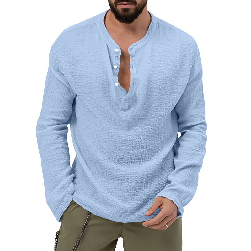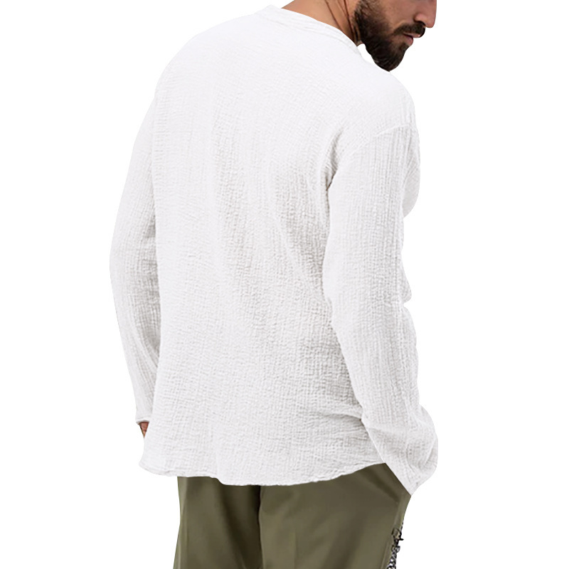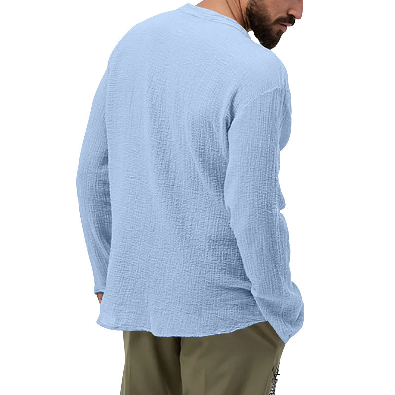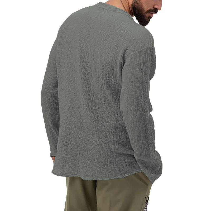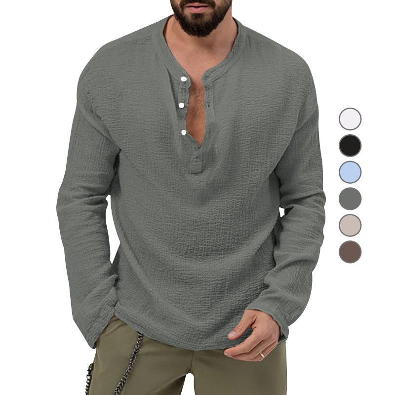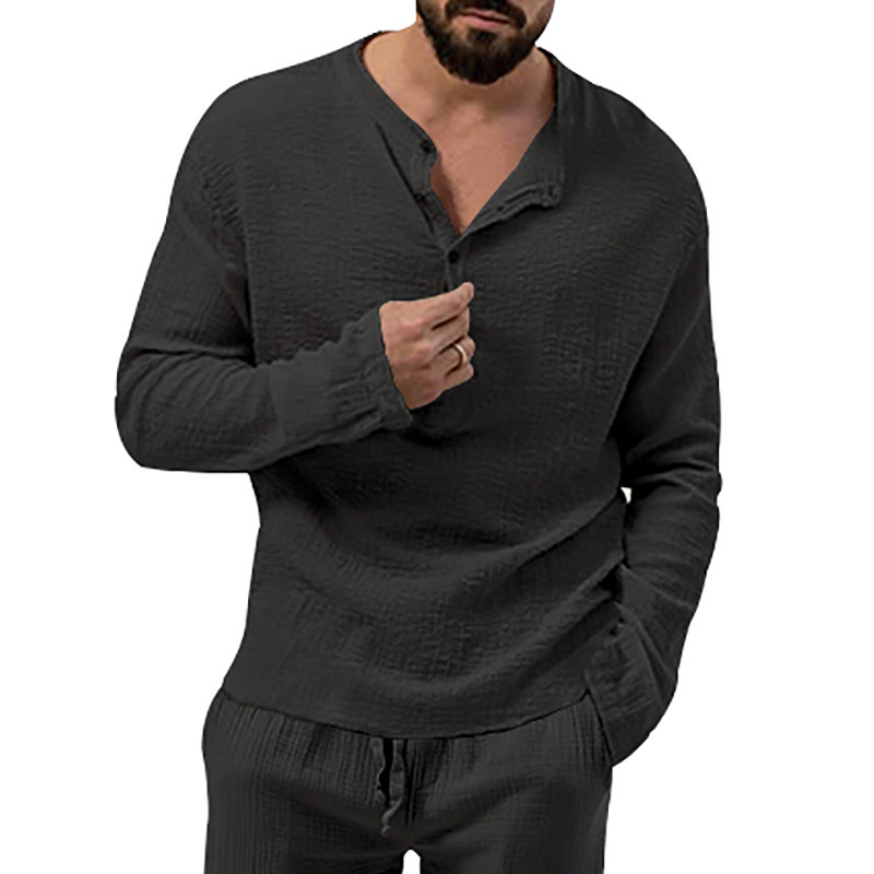 유럽과 미국 크로스 보더 2023 새로운 가을 긴팔 티셔츠 남성용 아마존 루즈한 모든 매치 버블 버튼 V 넥 탑스토어 가기