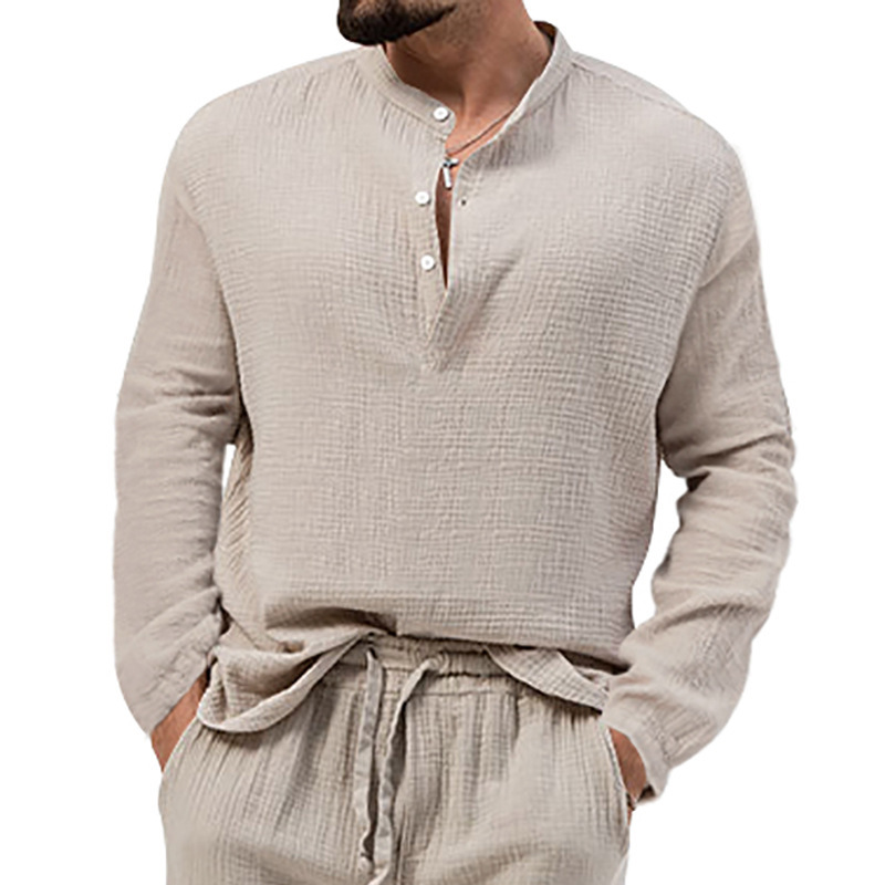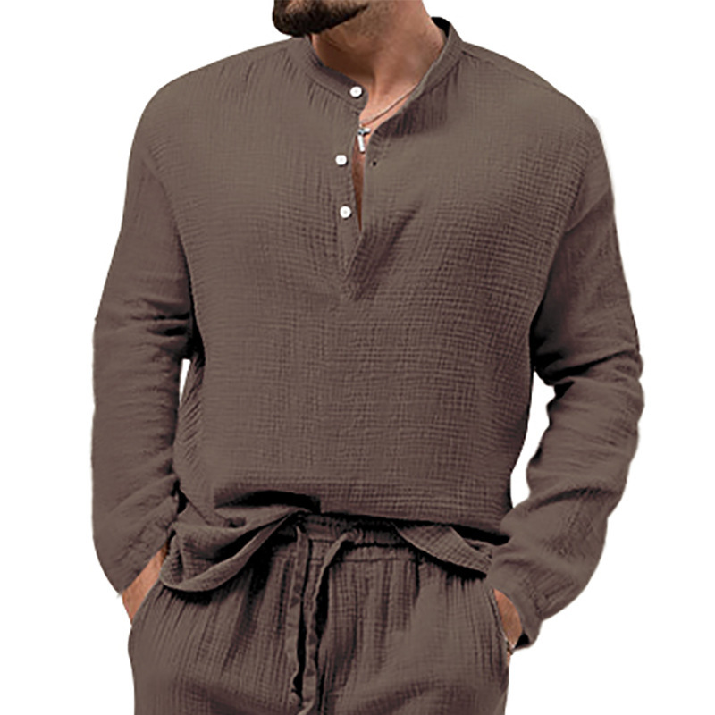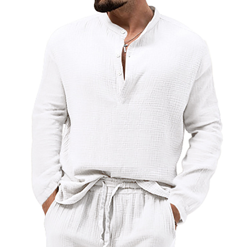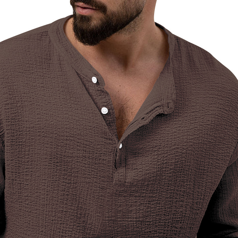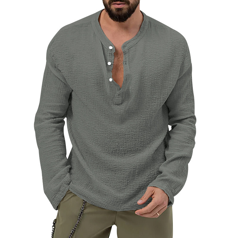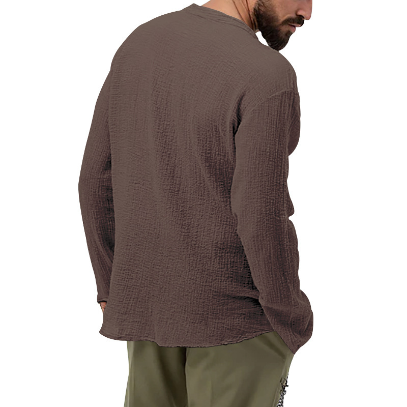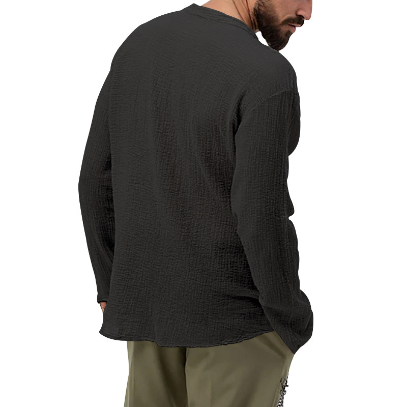 유럽과 미국 크로스 보더 2023 새로운 가을 긴팔 티셔츠 남성용 아마존 루즈한 모든 매치 버블 버튼 V 넥 탑스토어 가기