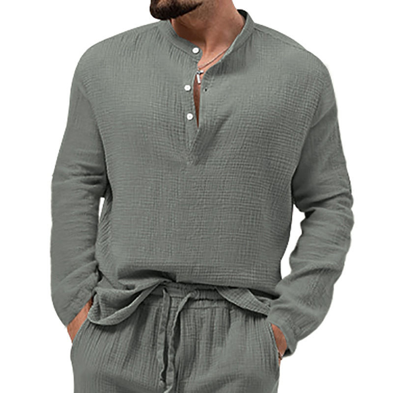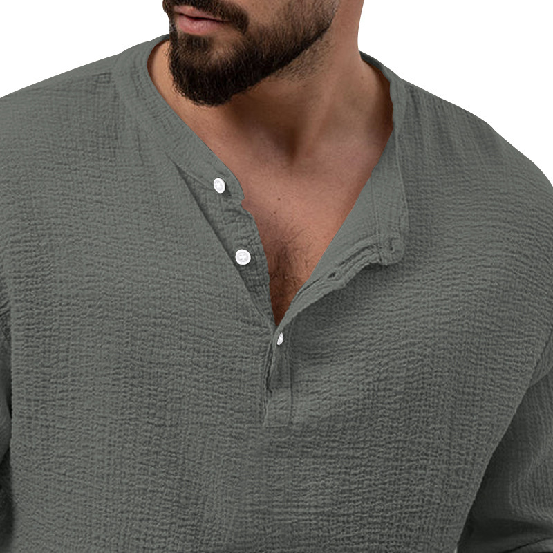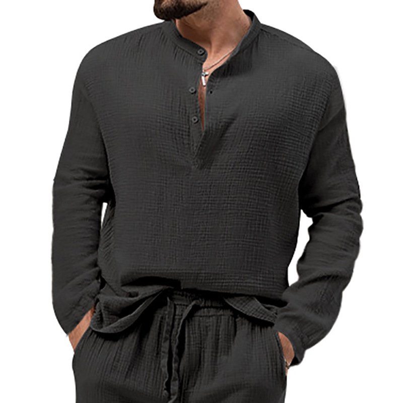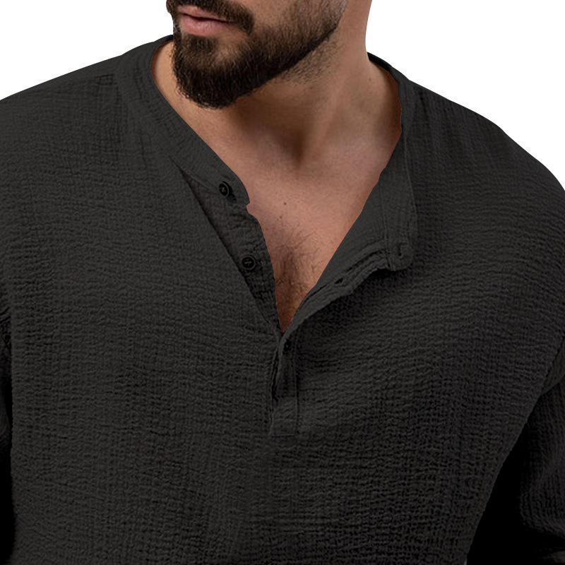 유럽과 미국 크로스 보더 2023 새로운 가을 긴팔 티셔츠 남성용 아마존 루즈한 모든 매치 버블 버튼 V 넥 탑