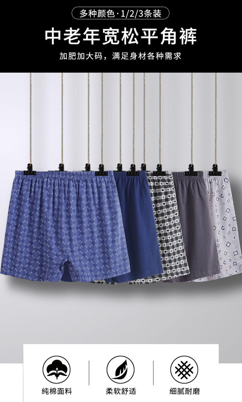 중년 및 노인 남성 속옷 남성용 복서 바지 면 느슨한 아빠의 홈 잠옷 바지 플러스 뚱뚱한 큰 반바지 뚱뚱한 바지
