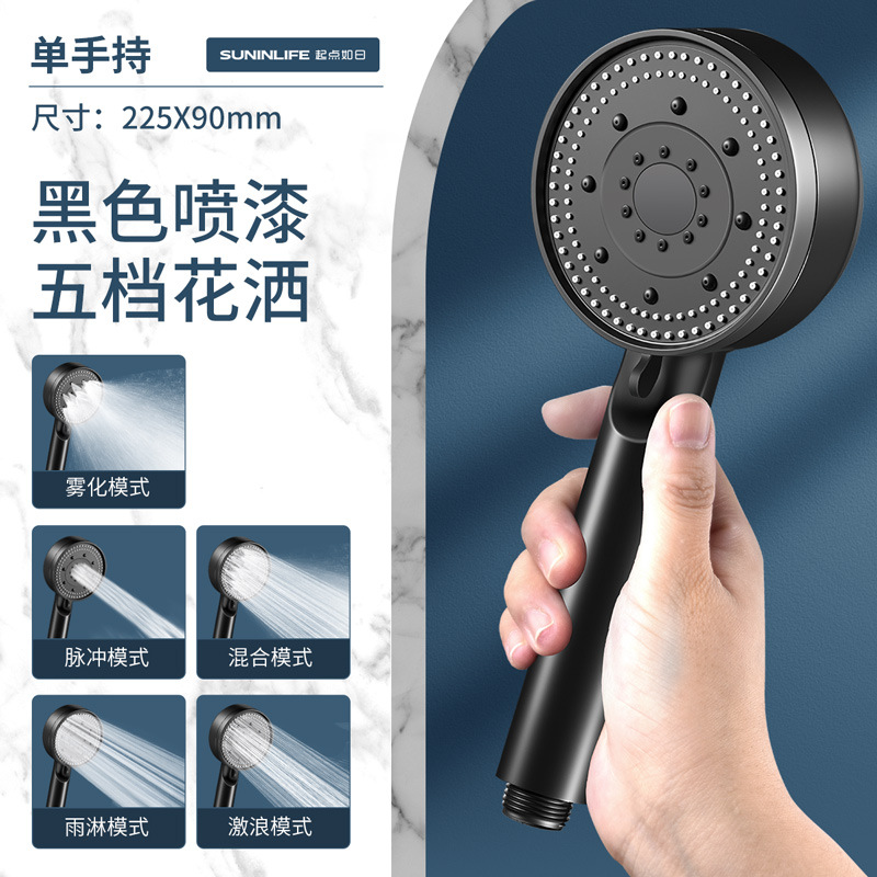 • 【2025년형 신규 업그레이드】 블랙 5단 수압 조절 샤워기 - 풍부한 수압