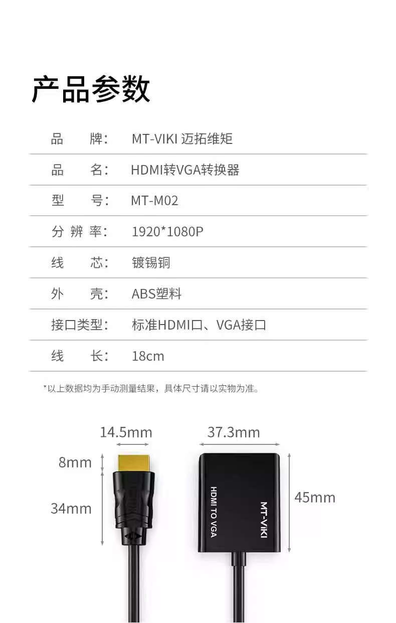 오디오 인터페이스 노트북 프로젝터 htmi 변환 어댑터가있는 Maituowei moment hdmi to vga 케이블스토어 가기