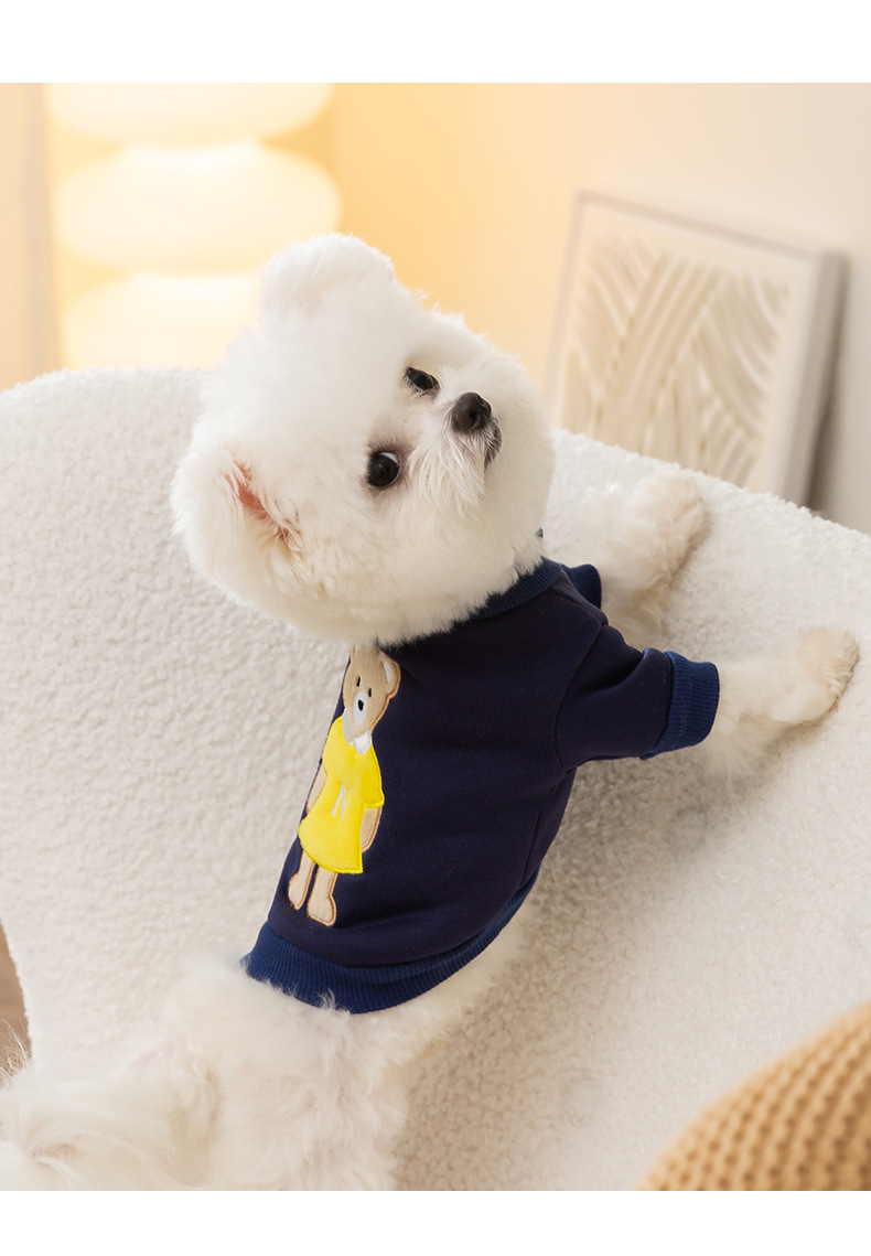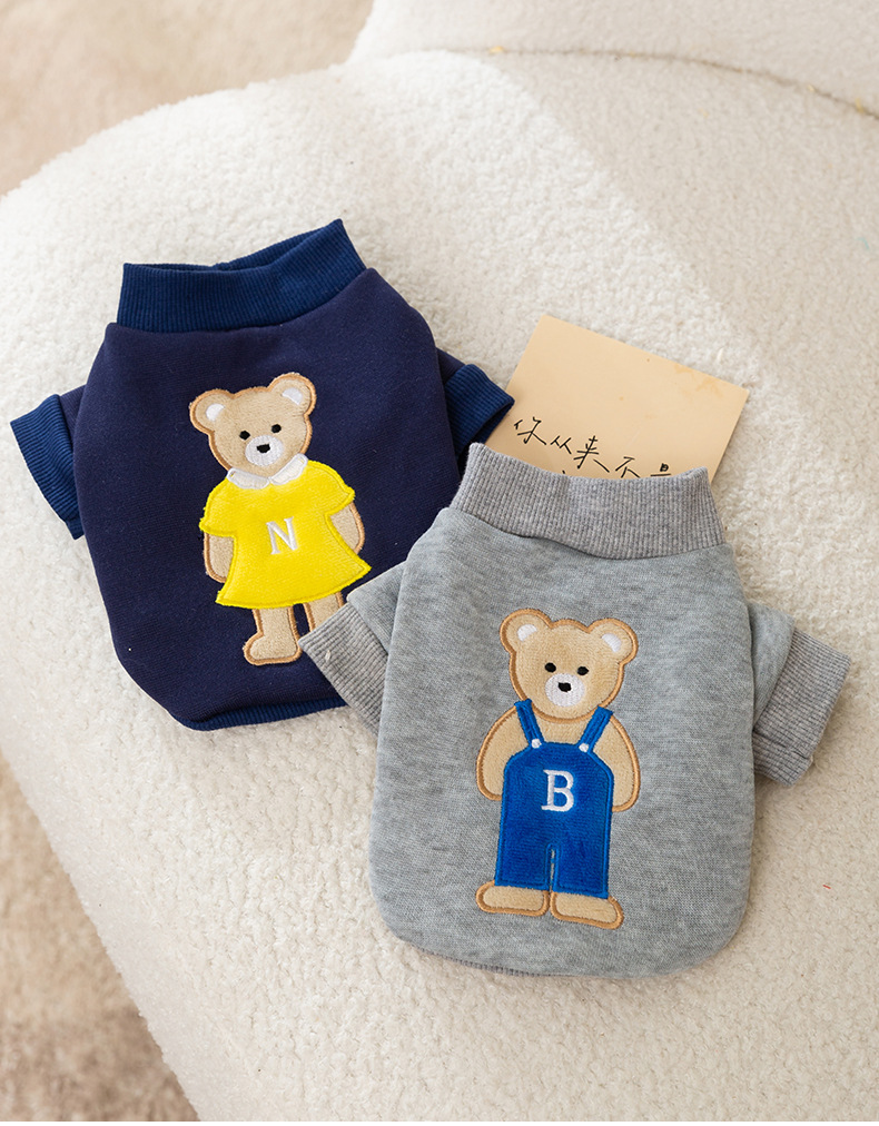 개 크루넥 스웨터 가을과 겨울 한국 스타일 귀여운 곰 중형 및 소형 개 두 다리 따뜻한 고양이 옷 애완 동물 용품스토어 가기