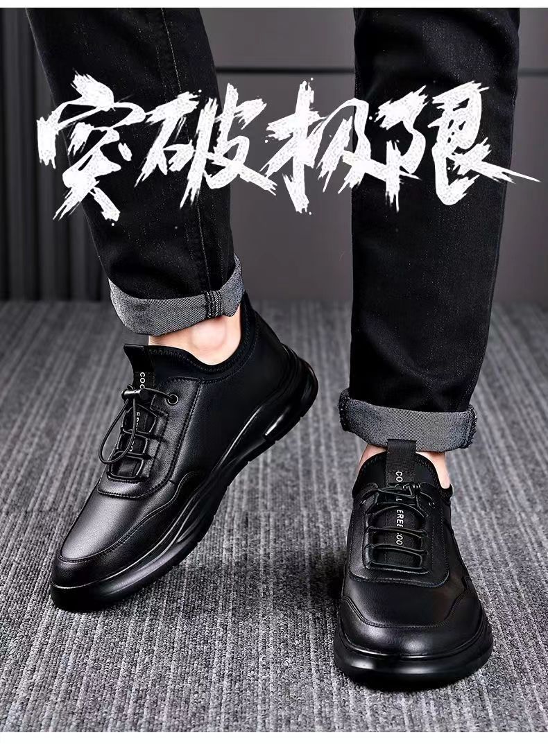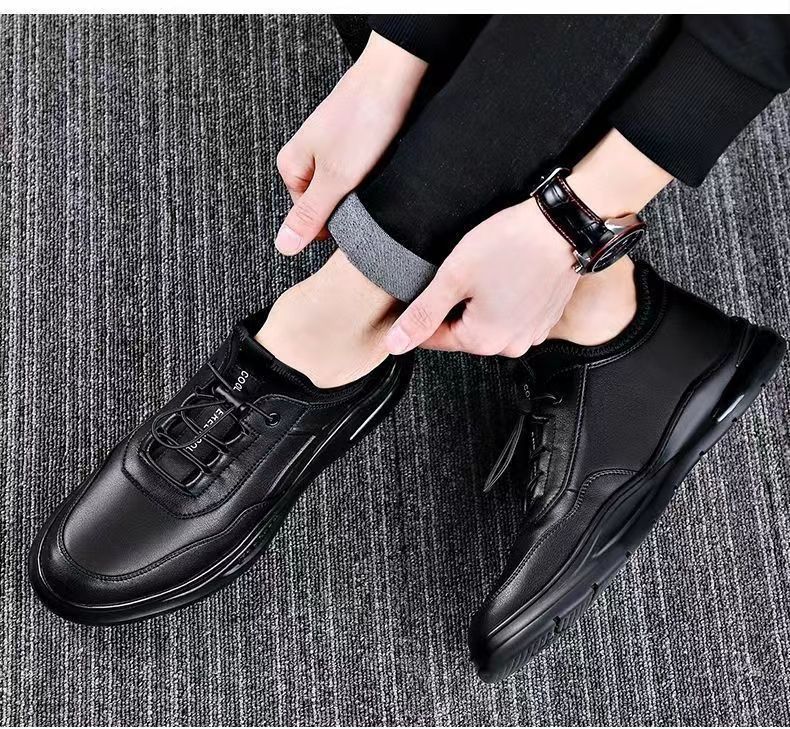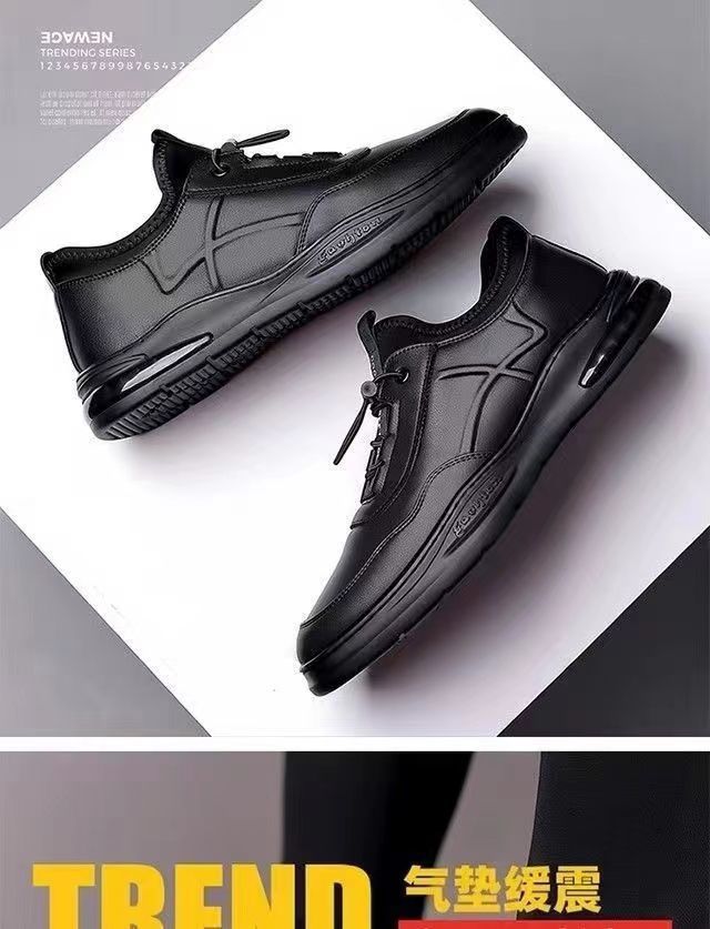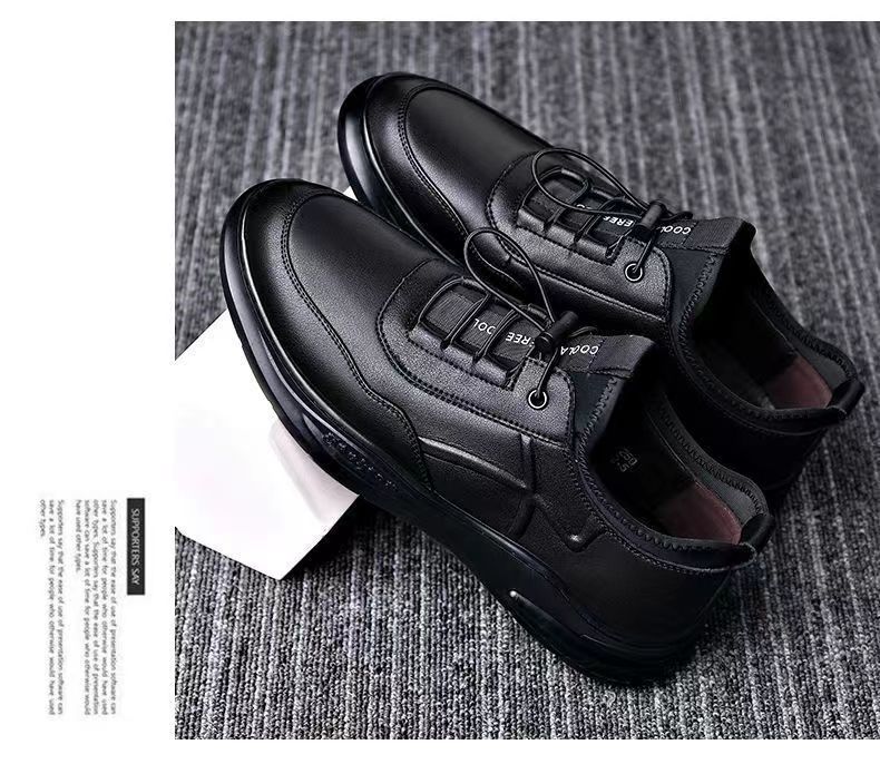 남성 신발 봄 신작 캐주얼 비즈니스 가죽 신발 다목적 패션 트렌드 에어 쿠션 탄성 밴드 블랙 스포츠 가죽 신발스토어 가기