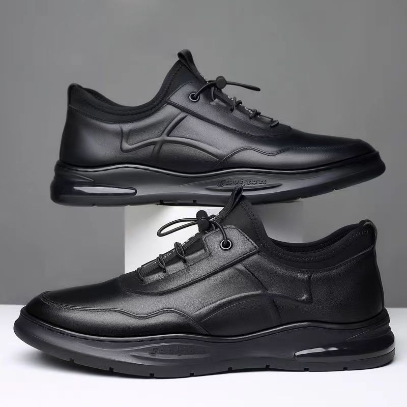 남성 신발 봄 신작 캐주얼 비즈니스 가죽 신발 다목적 패션 트렌드 에어 쿠션 탄성 밴드 블랙 스포츠 가죽 신발