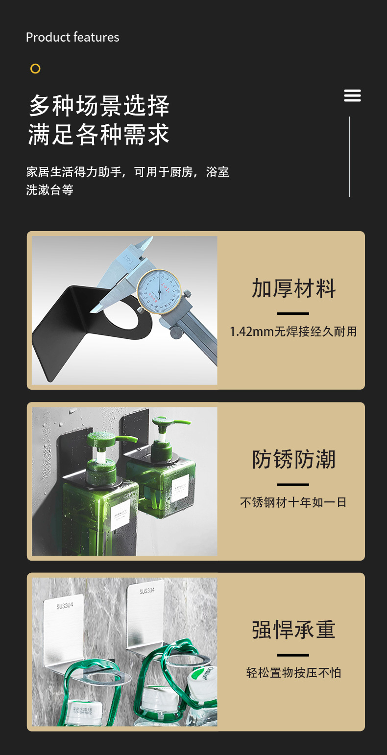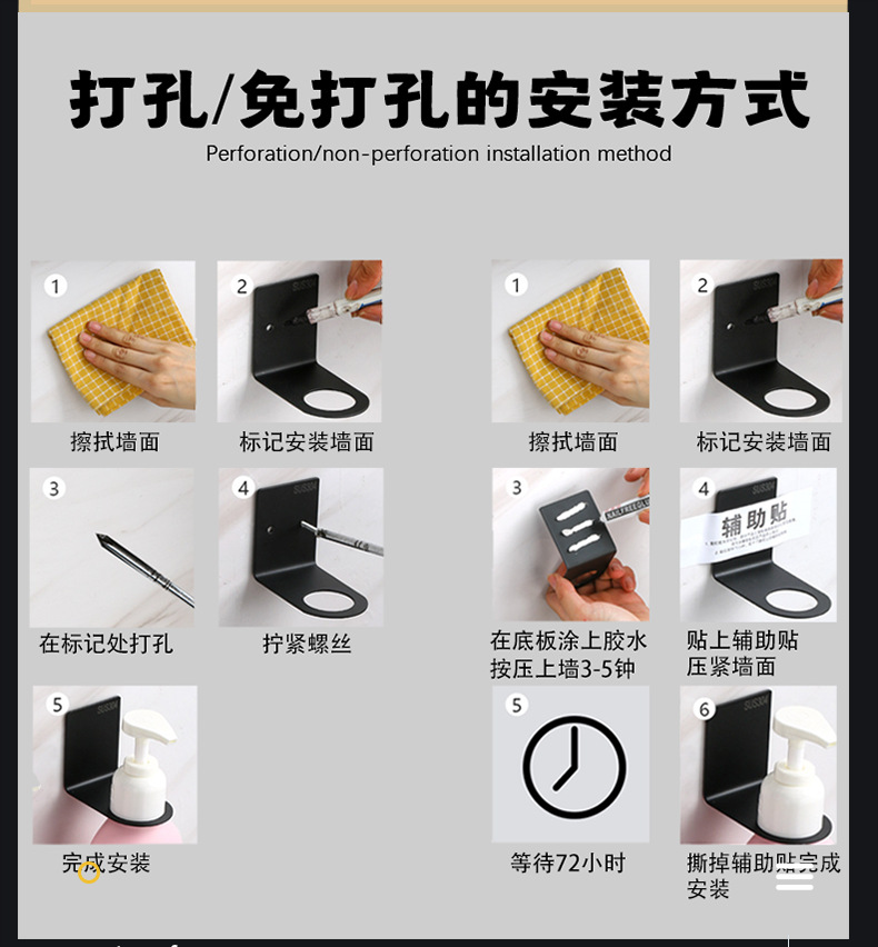 호텔 스테인레스 스틸 샤워 젤 스토리지 랙 크로스 보더 펀치 프리 욕실 샴푸 화장실 손 세정제 벽걸이