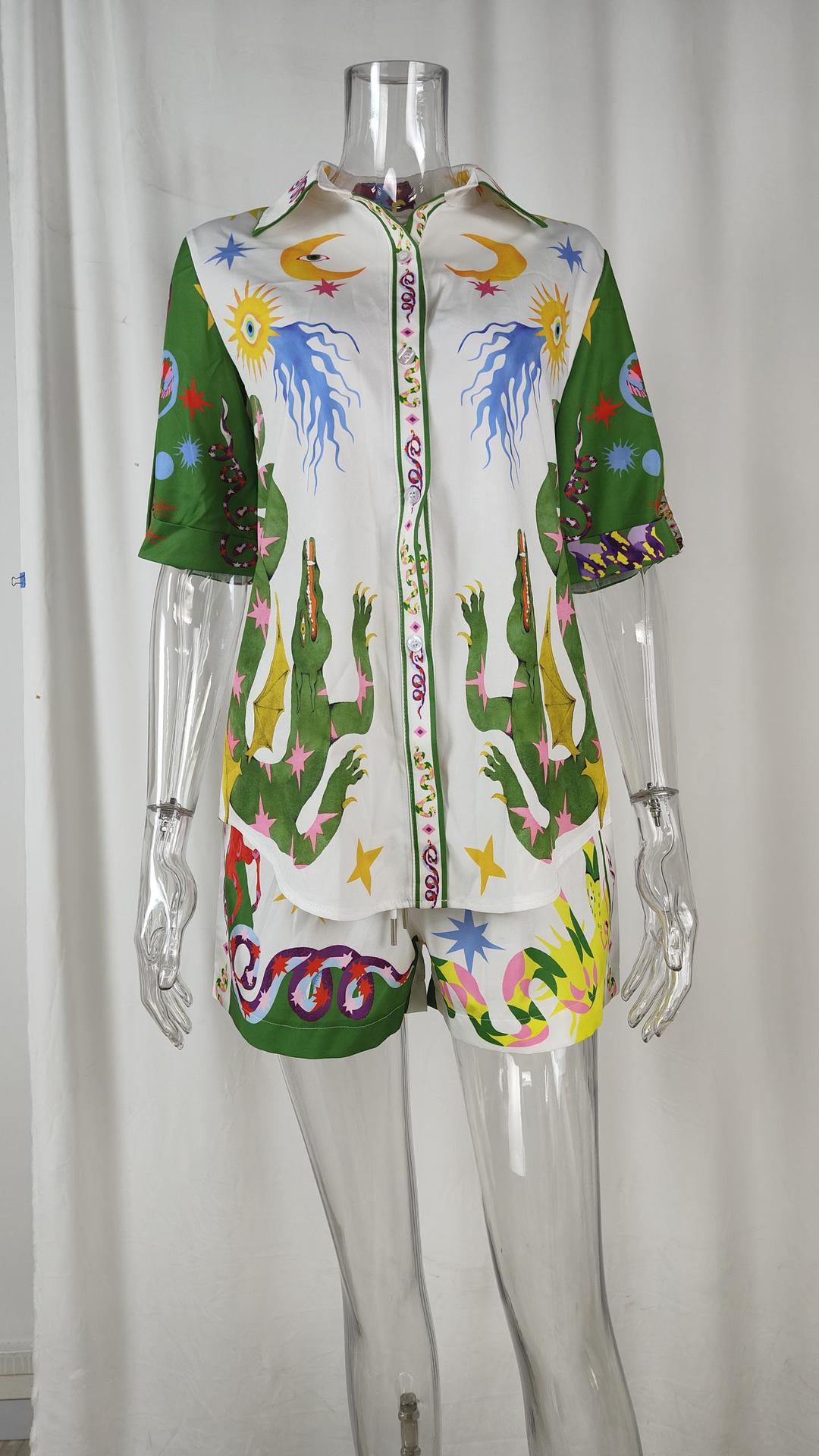 AliExpress 2023 여름 유럽과 미국 여성의 새로운 우아한 통근 인쇄 3 소매 캐주얼 패션 바지 세트
