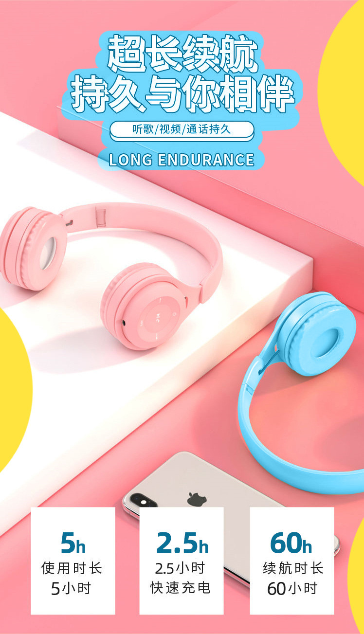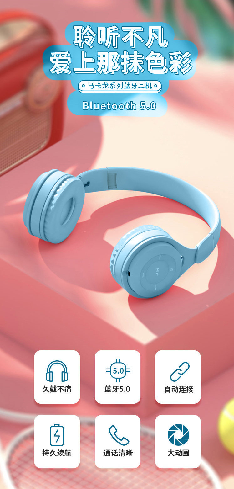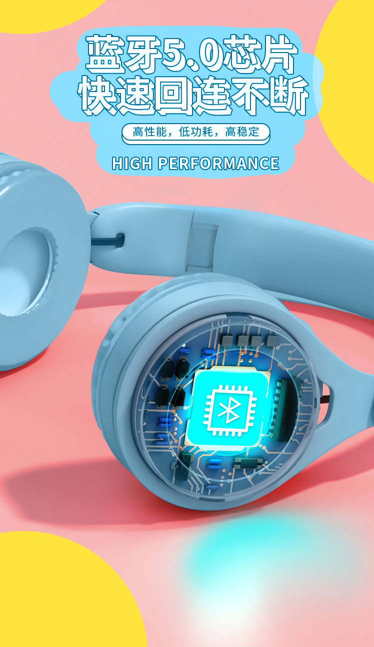 인기 마카롱 헤드 장착형 블루투스 헤드셋 만화 어린이 학생 Y08 선물 모바일 게임 헤드셋 헤드셋스토어 가기