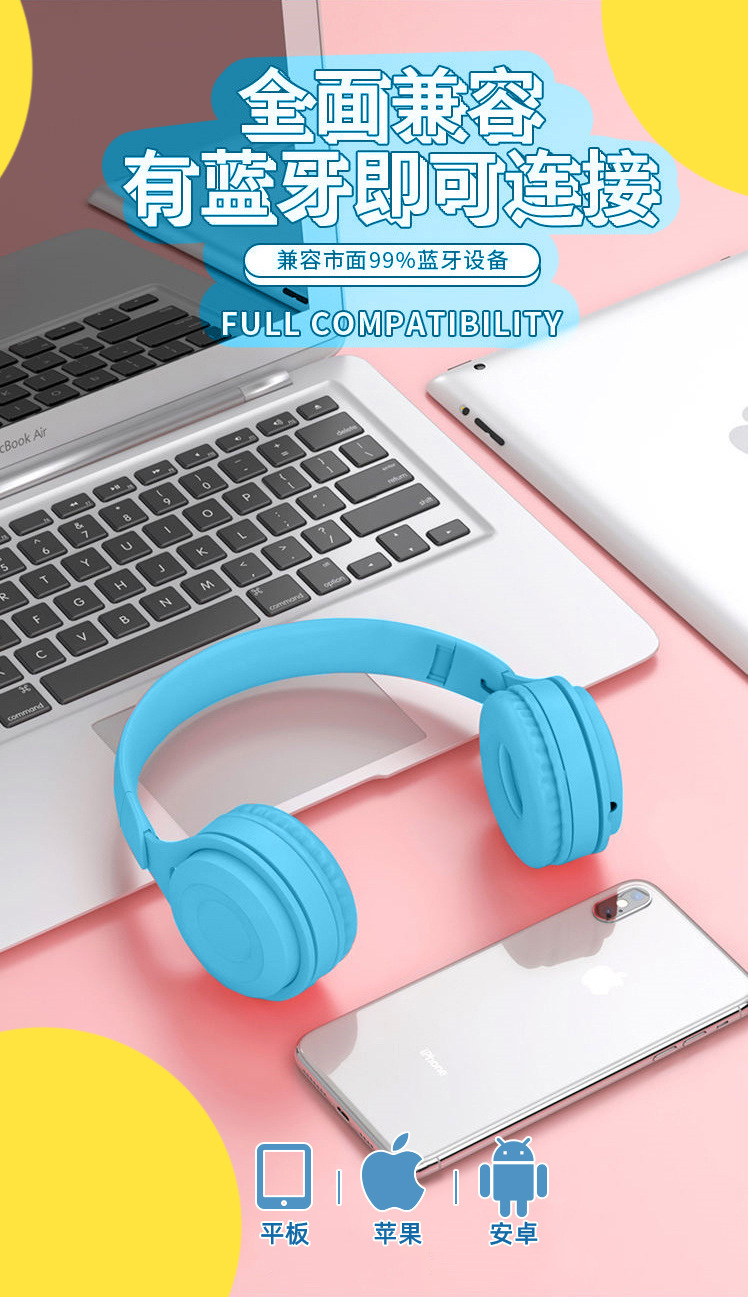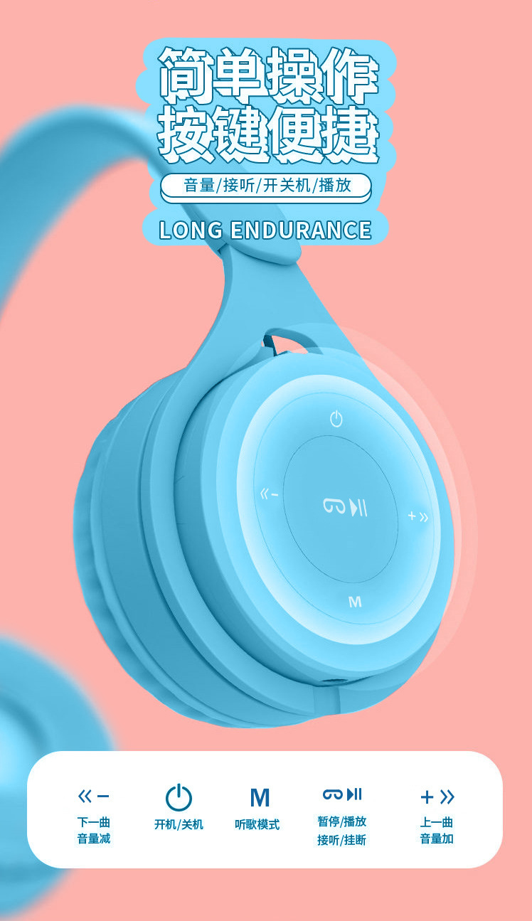 인기 마카롱 헤드 장착형 블루투스 헤드셋 만화 어린이 학생 Y08 선물 모바일 게임 헤드셋 헤드셋