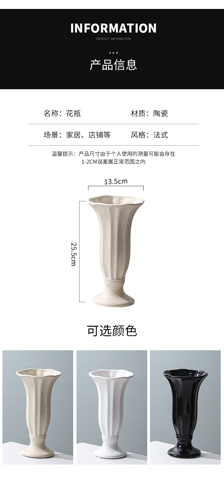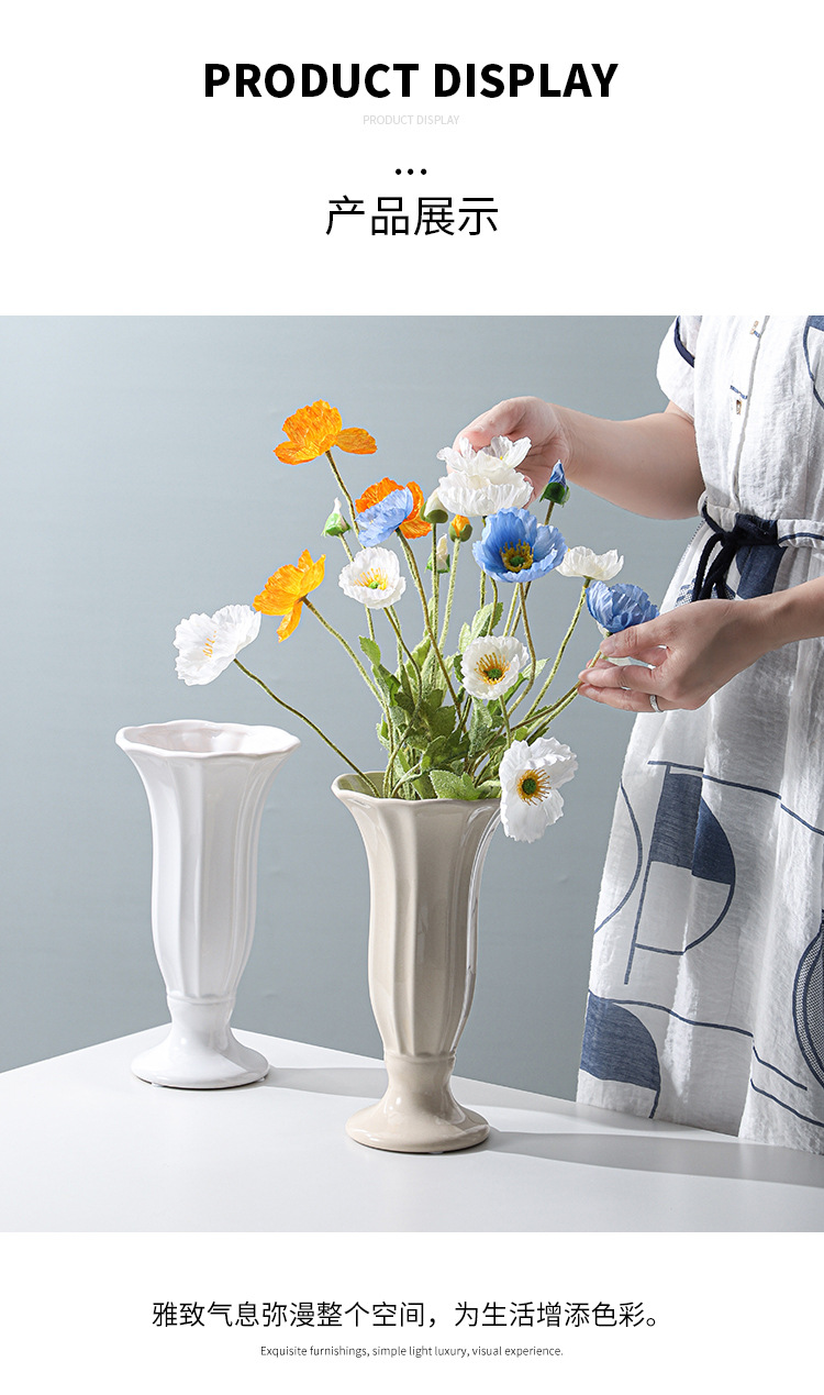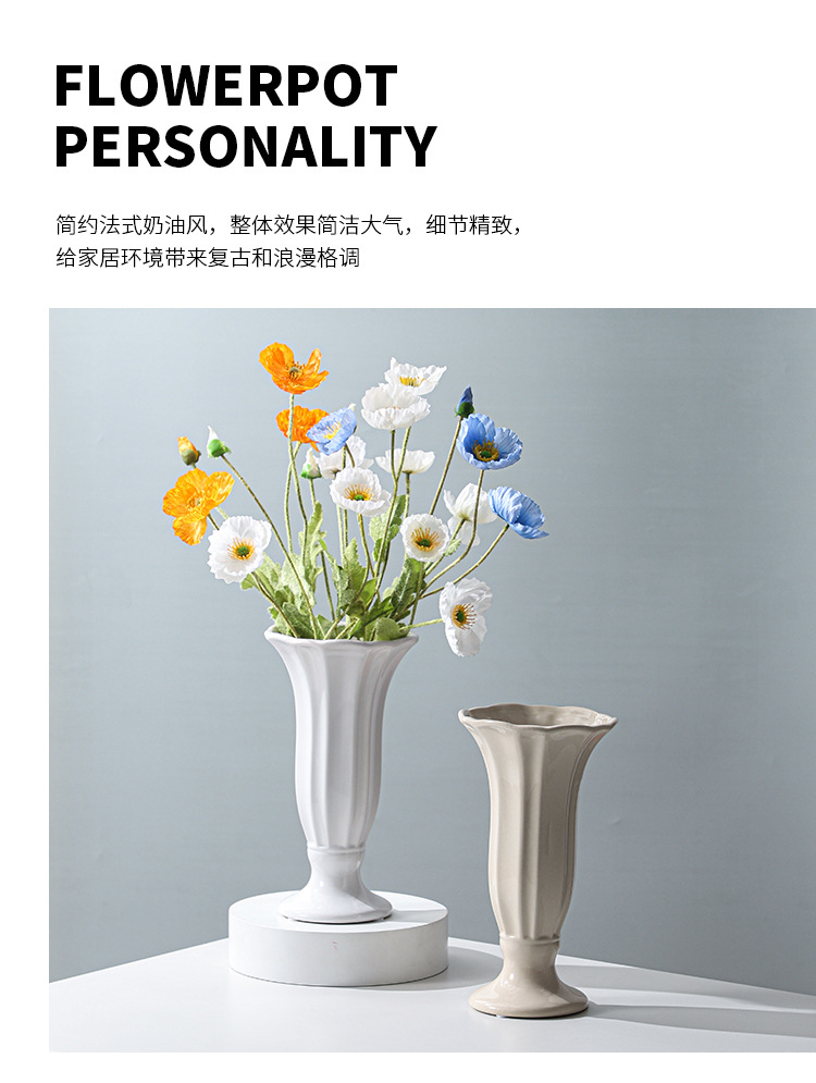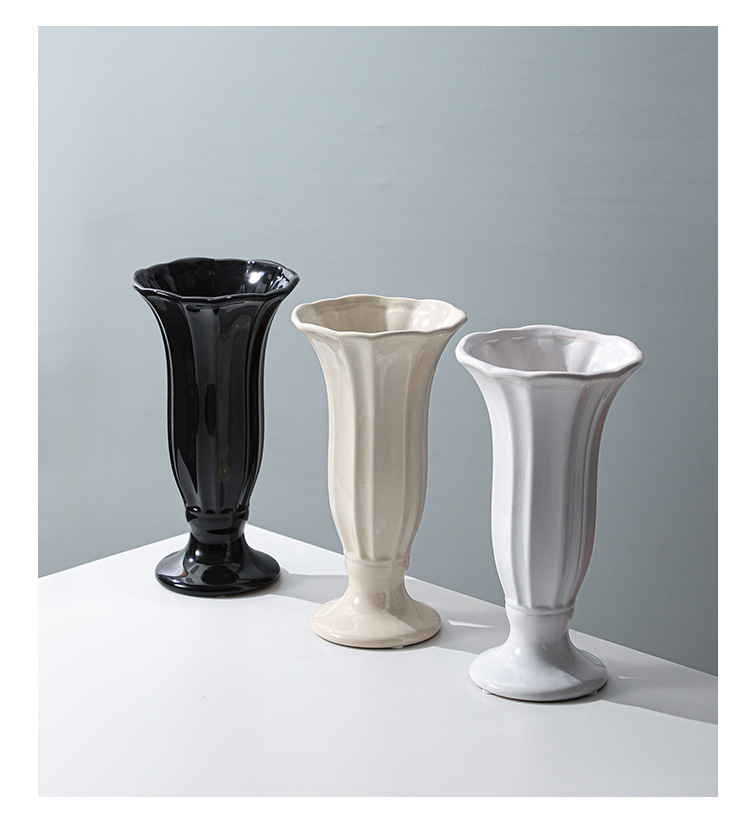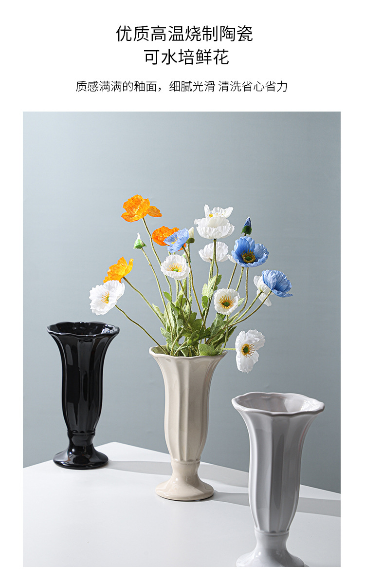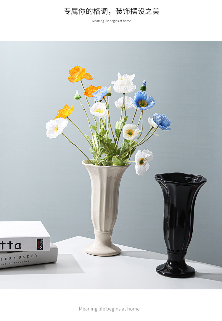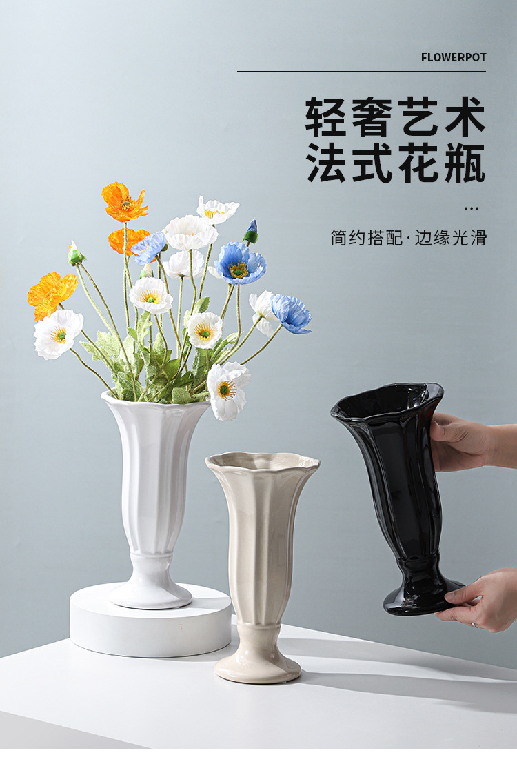 꽃병 장식품 거실 꽃 배열 세라믹 고급 감각 빛 럭셔리 간단한 흑백 꽃 릴리 크림 아메리칸 스타일 빈티지스토어 가기