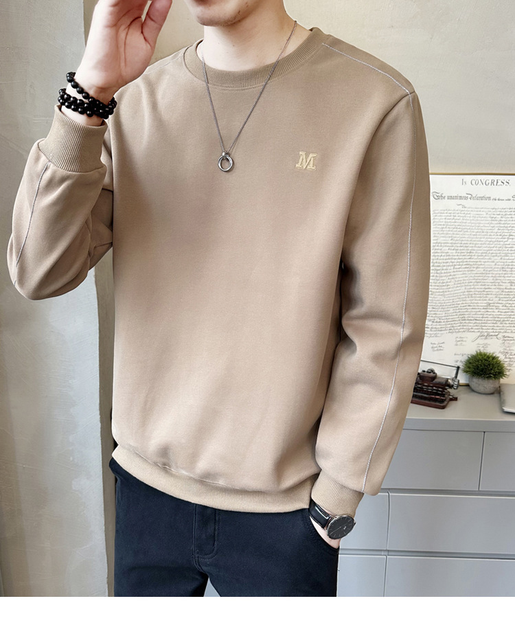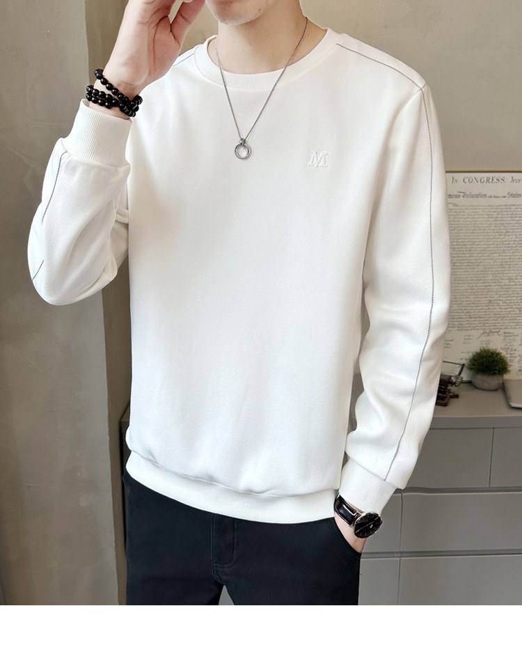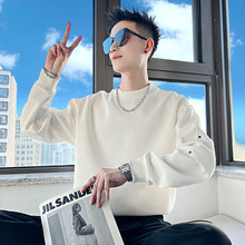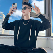Van Wo FW7444 2023 가을 새로운 패션 라운드 넥 스웻셔츠 한국베이스 티셔츠 슬림핏 비 다림질 조수