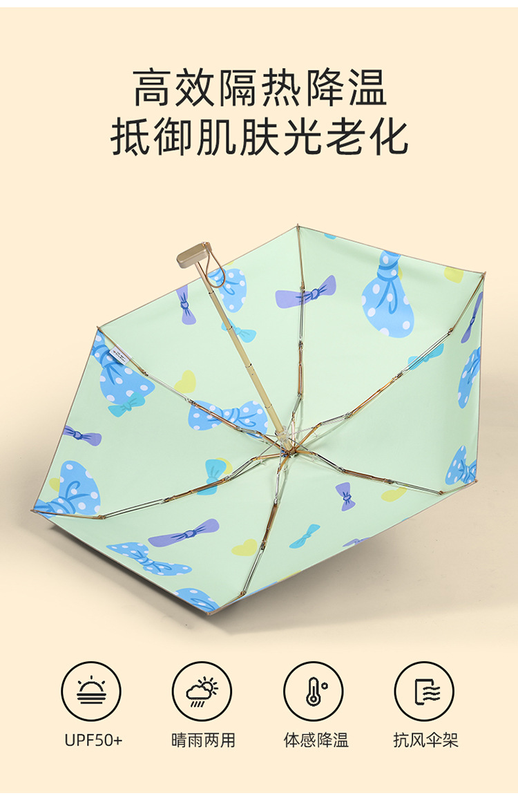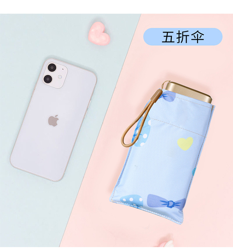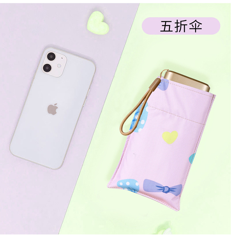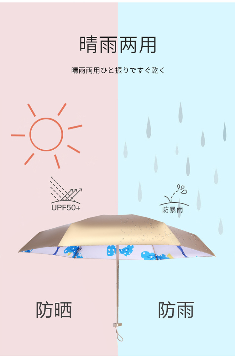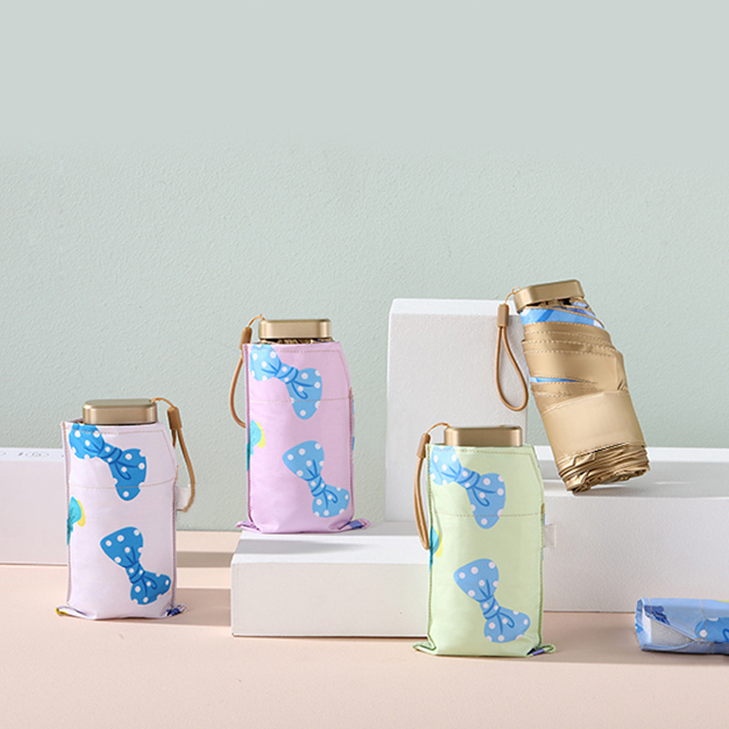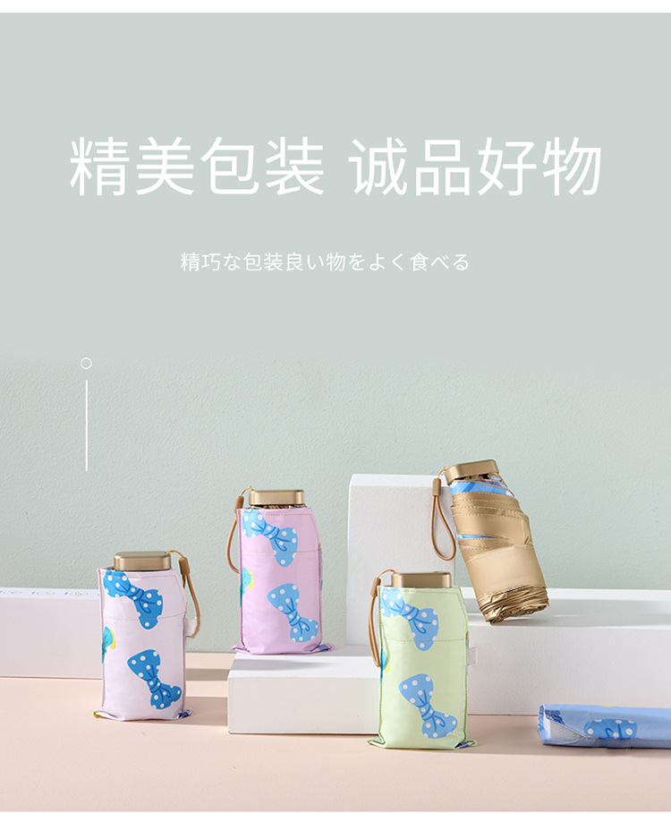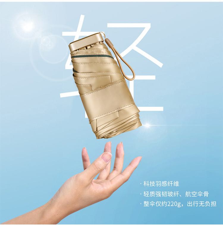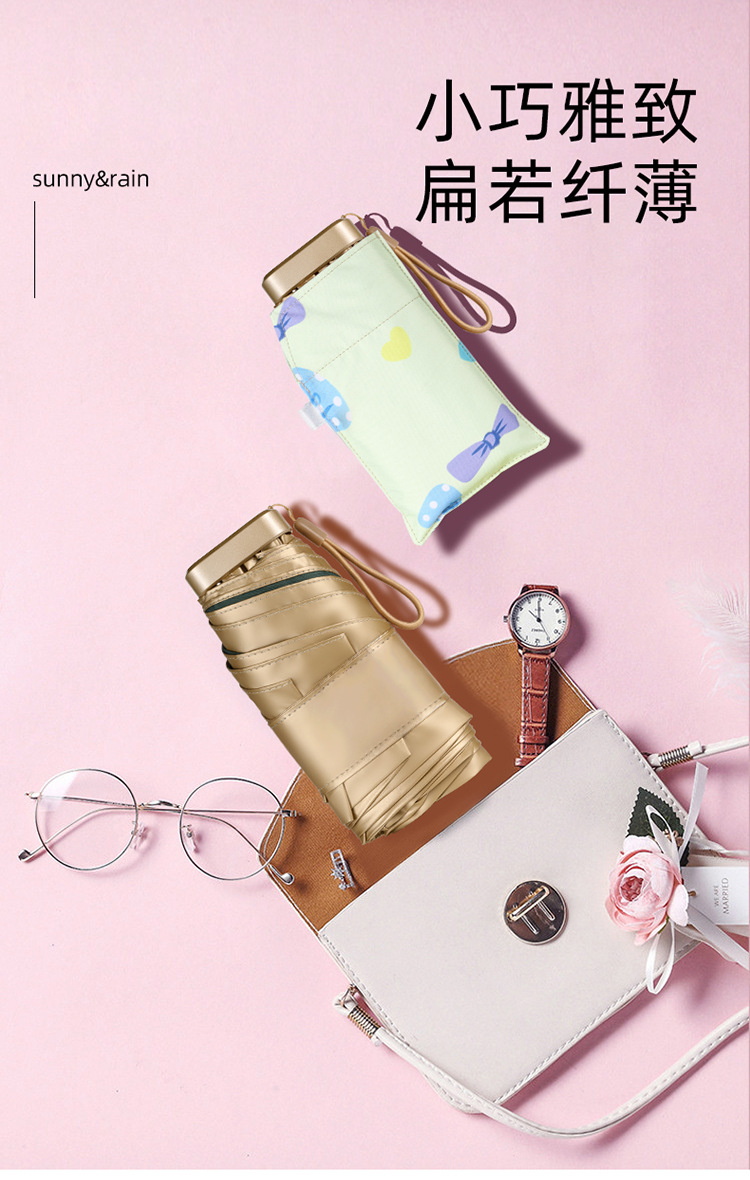 골드 접착제 카드 태양 우산 맑고 비오는 이중 사용 태양 보호 UV 보호 여성 휴대용 포켓 평면 작은 우산 인터넷 유명 인사스토어 가기