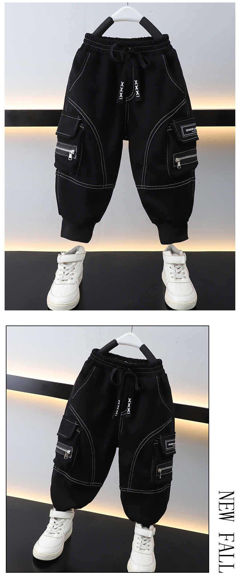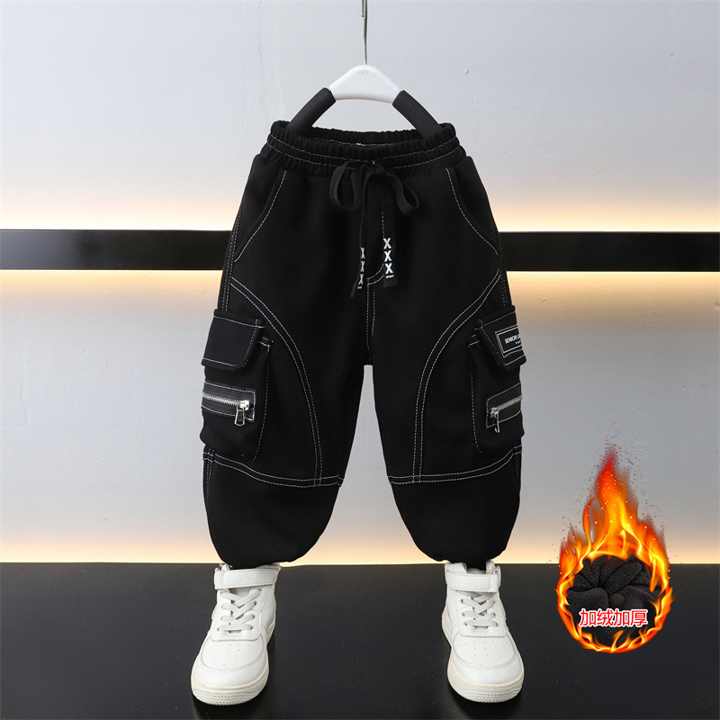 소년 작품 바지 봄과 가을 바지 2024 새로운 서양식 어린이 기모 3 차원 포켓 유행 캐주얼 바지스토어 가기