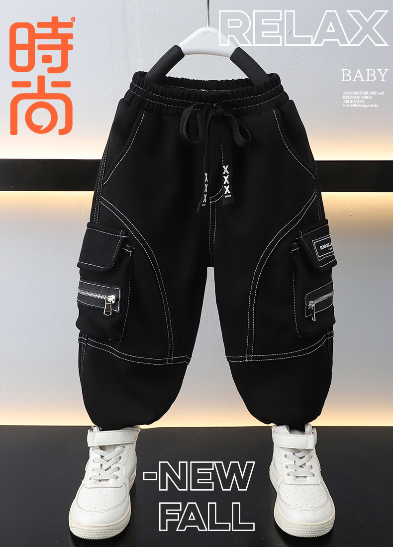 소년 작품 바지 봄과 가을 바지 2024 새로운 서양식 어린이 기모 3 차원 포켓 유행 캐주얼 바지