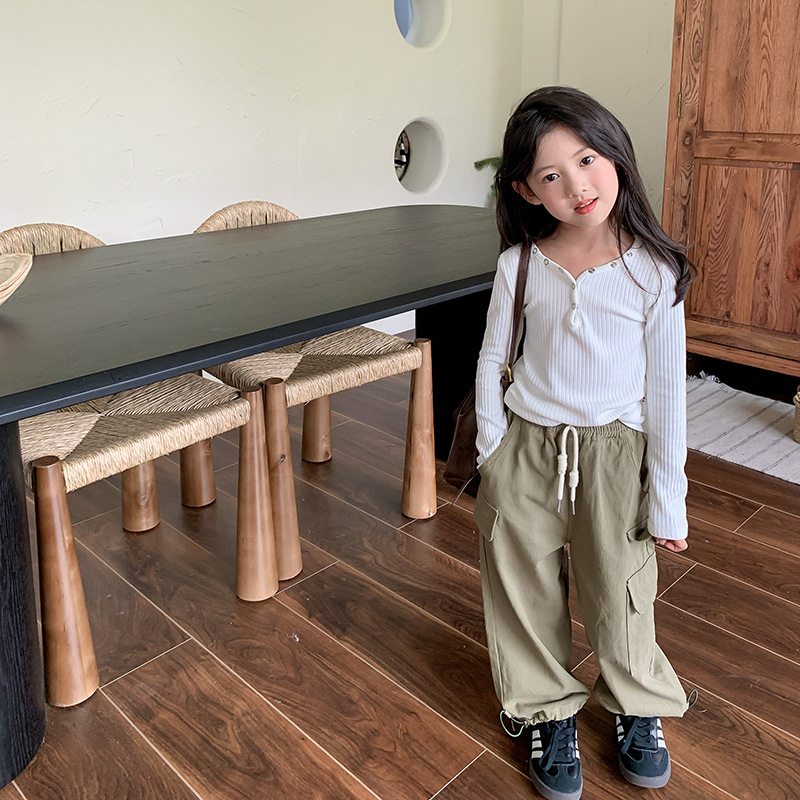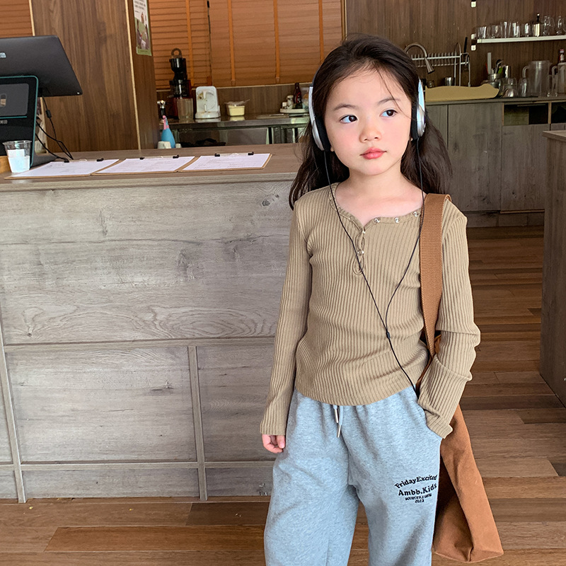 Emo Beibei 2023 소녀를위한 이른 가을 아동복 한국 스타일 외국 스타일 단색 긴 소매 티셔츠 슬림 핏 핏 베이스 셔츠 트렌디스토어 가기